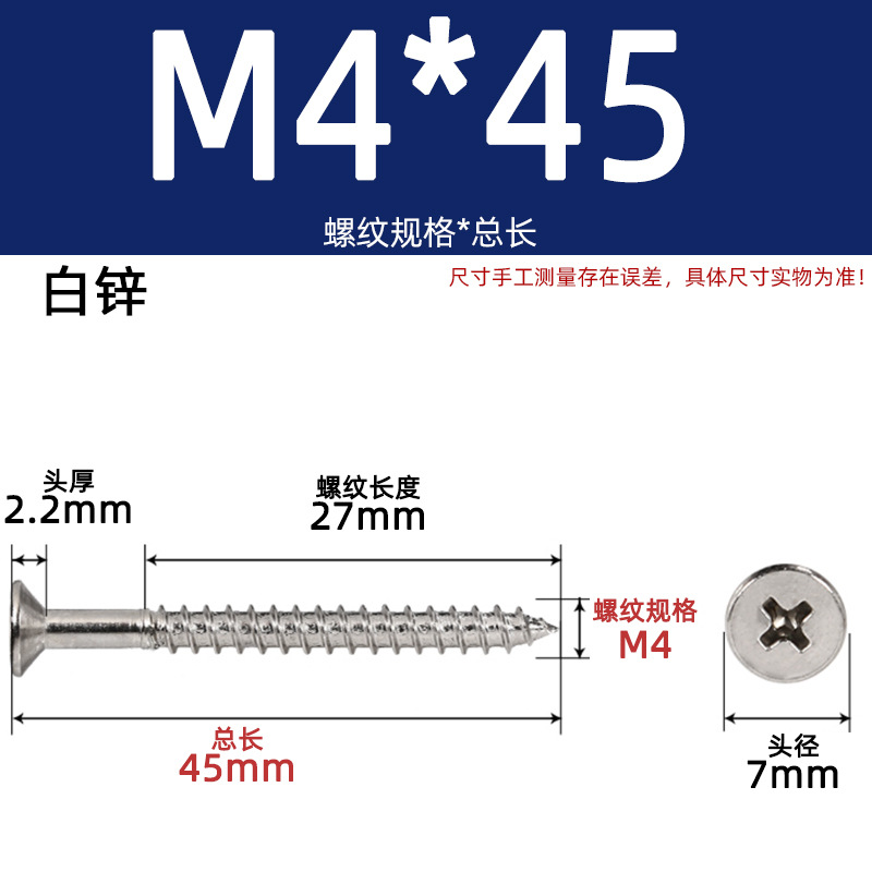 • 카운터 침몰 헤드 셀프 태핑 M4 * 38 파란색과 흰색 아연 (소금 스프레이를 통과 할 수 있음)