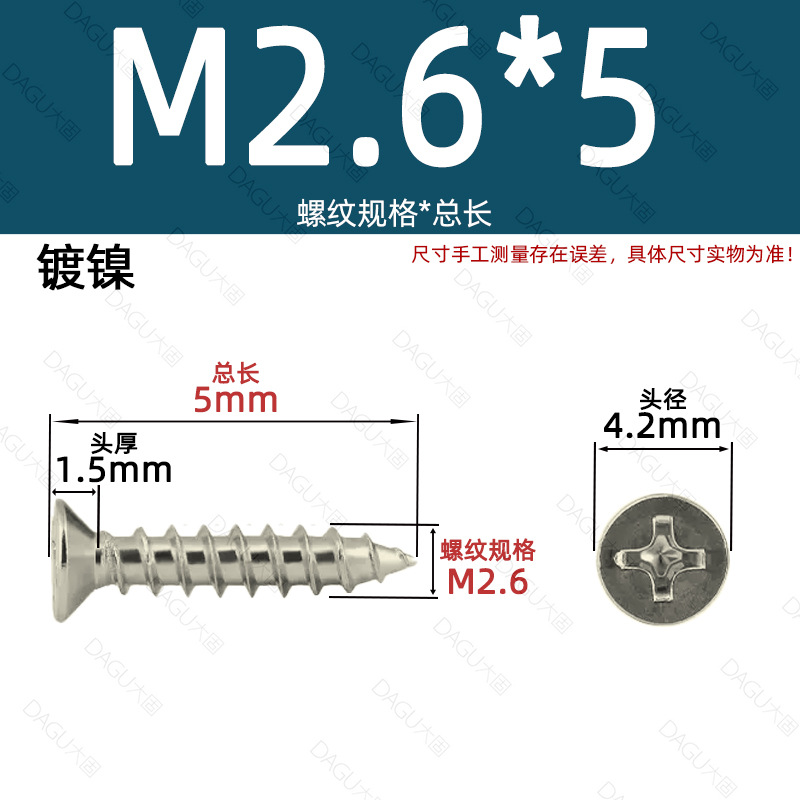 • 접시 머리 셀프 태핑 M2.6 * 5 니켈 도금