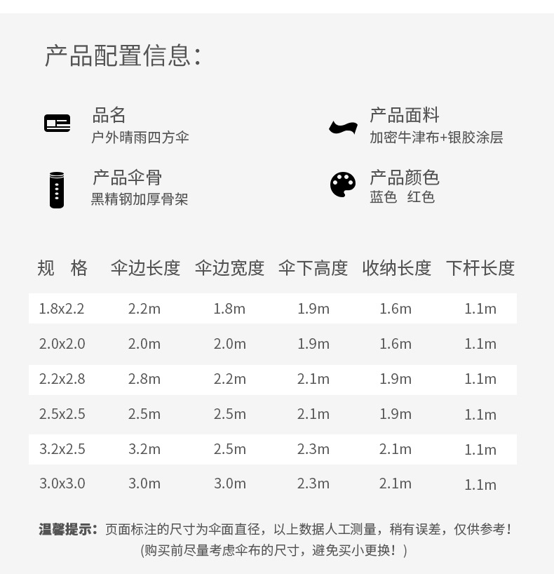 정사각형 스톨 방수 대형 우산 야외 안뜰 우산 파라솔 방수 실버 접착제 광고 태양 보호 스톨 우산