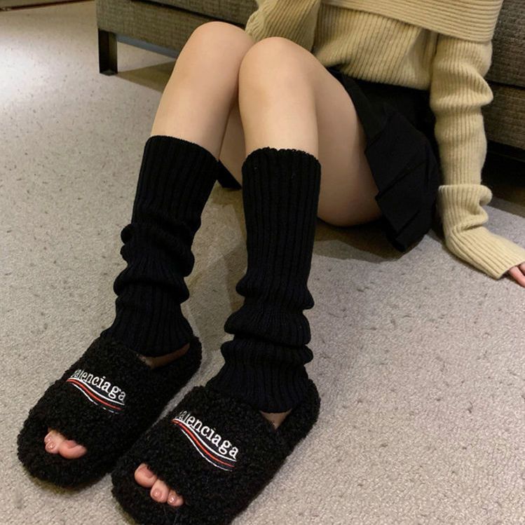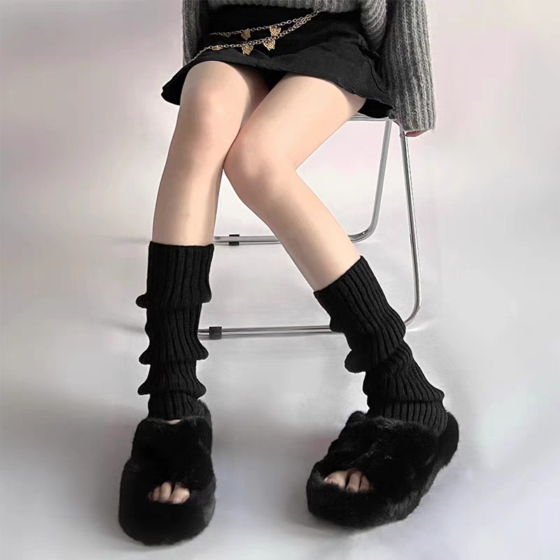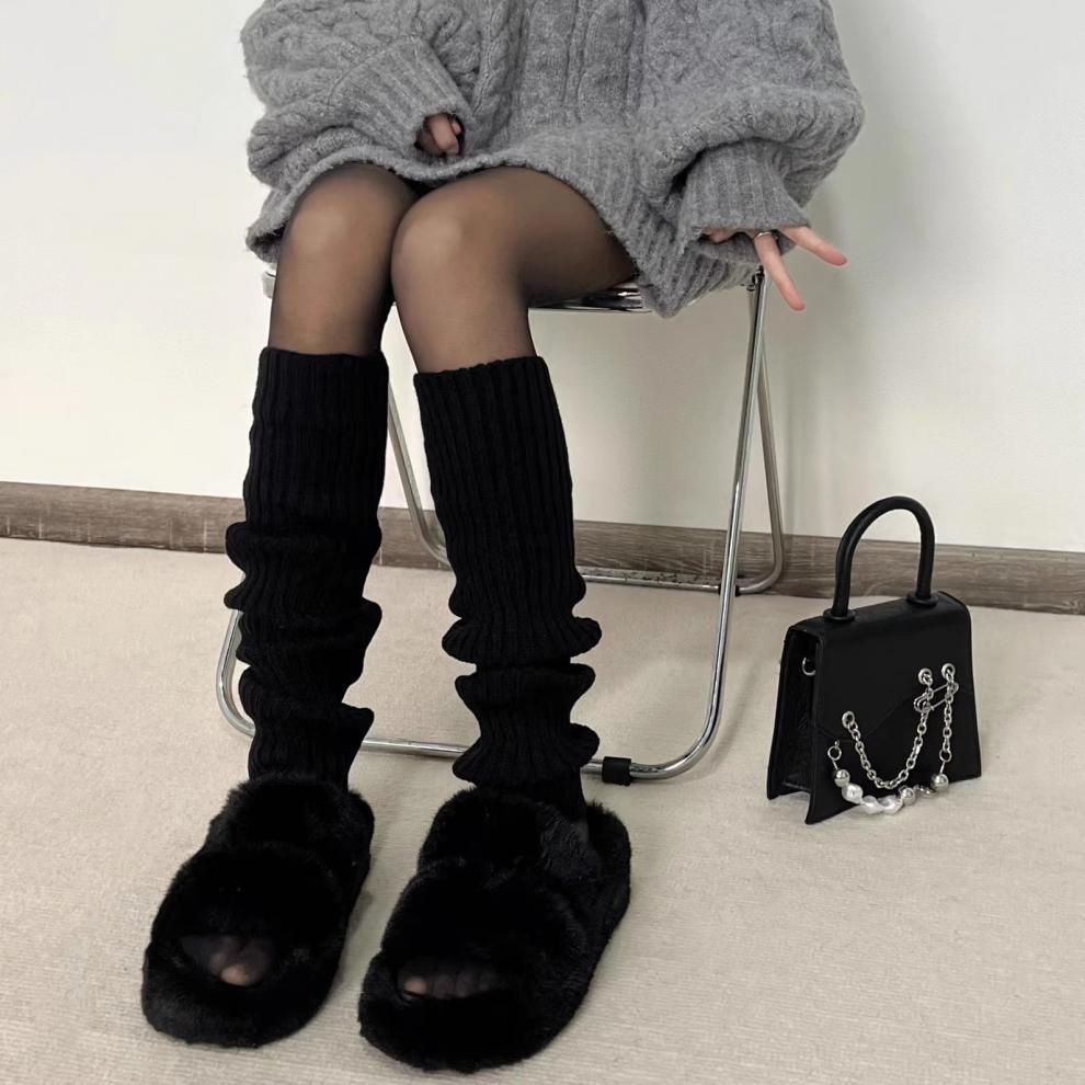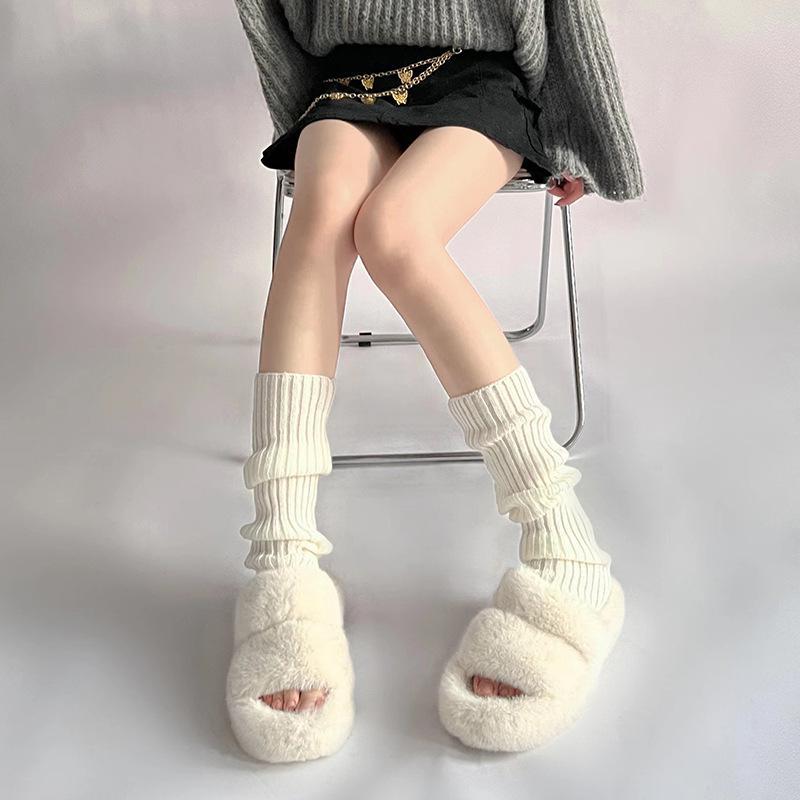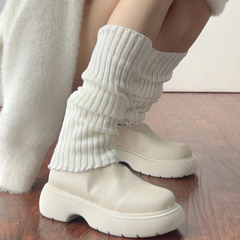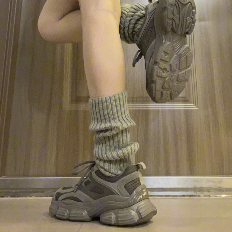 가을과 겨울 니트 다리 커버 쌓인 양말 두꺼운 다리 느슨한 올매치 따뜻한 회색 JK 슬림 모양 단색 Ins 긴 튜브 양말 커버스토어 가기
