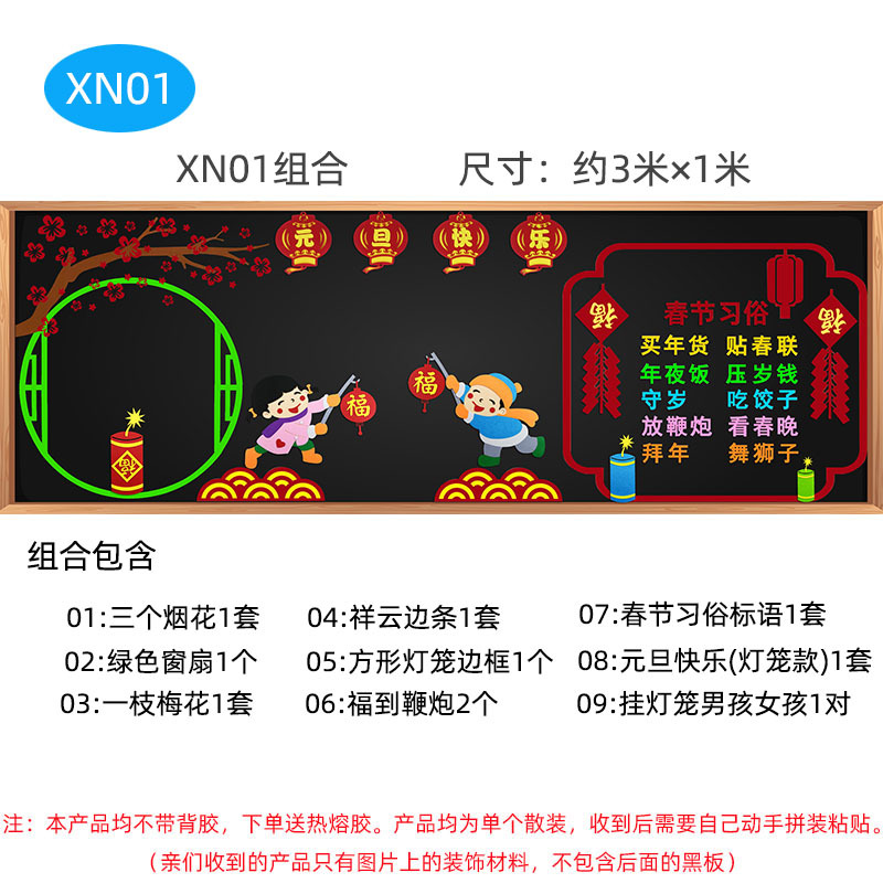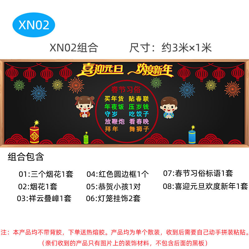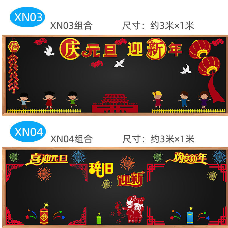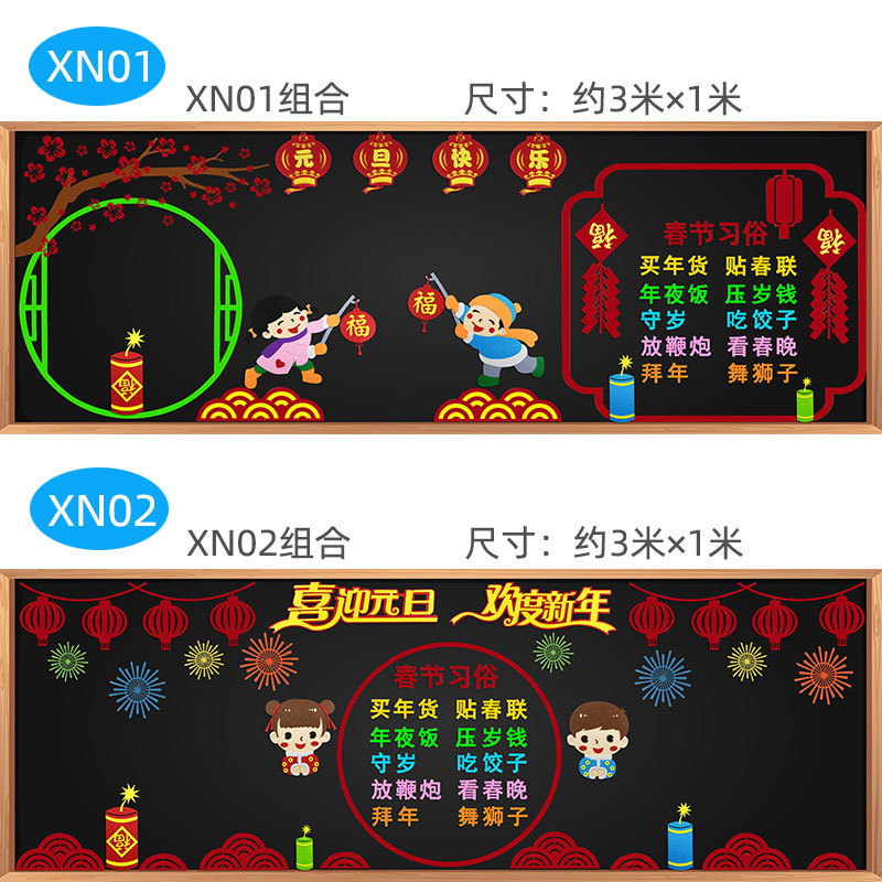 새해 축하 및 새해 인사말 테마 칠판 신문 장식 벽 스티커 초등 및 중등 학교 교실 배열 수업 문화 반지 창조