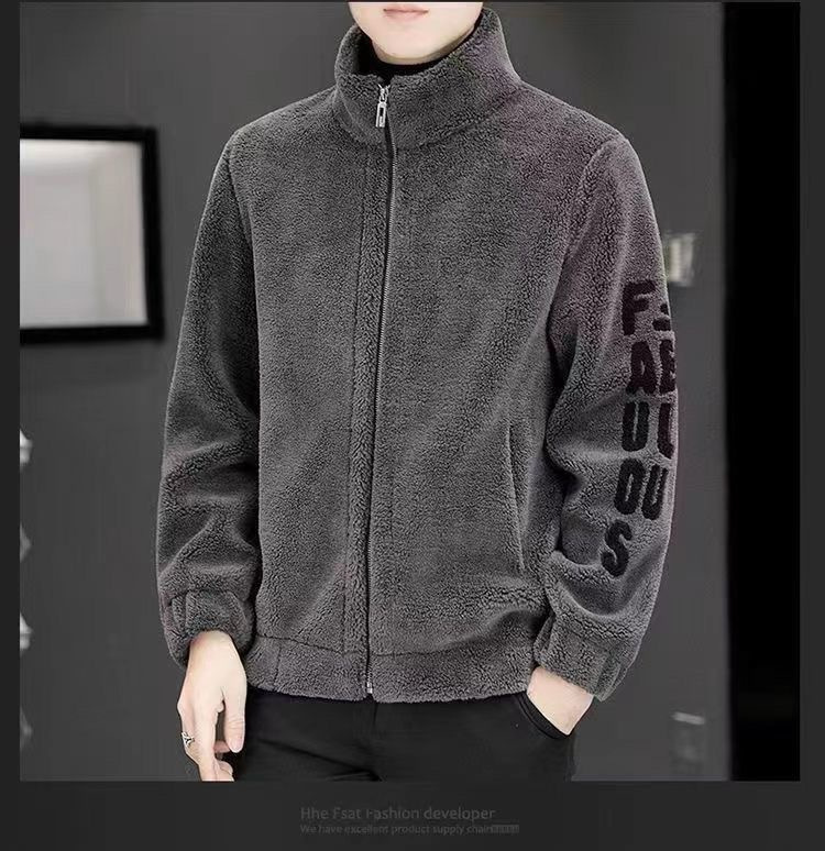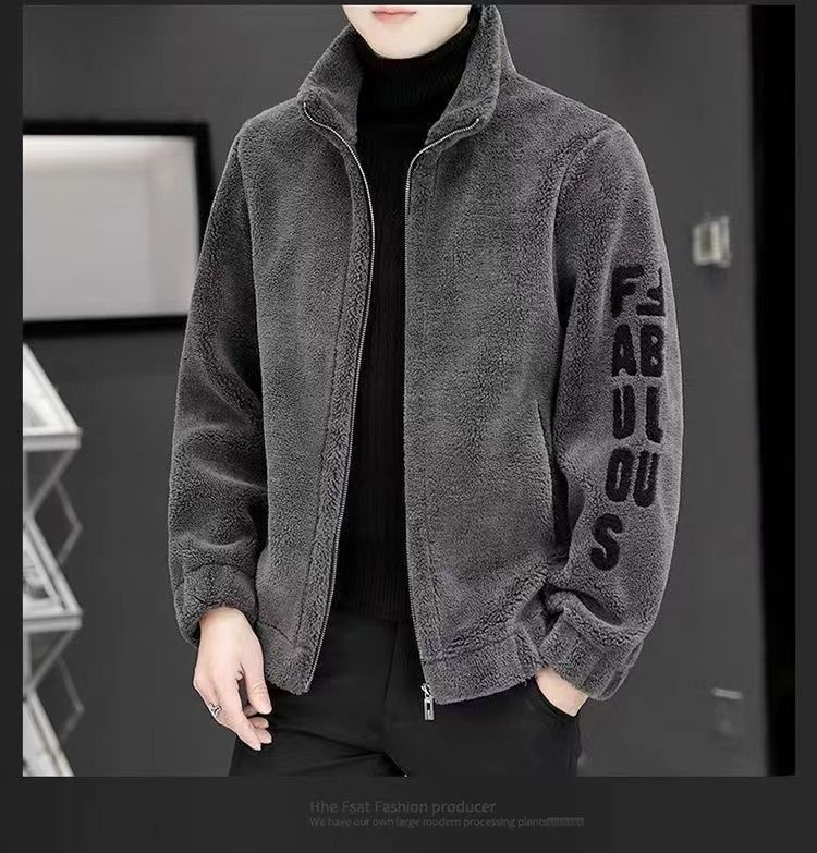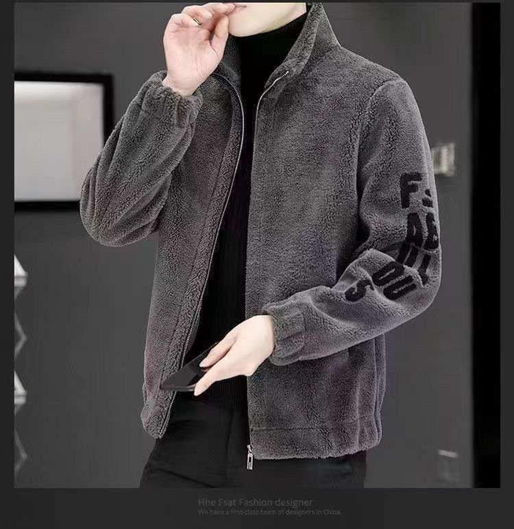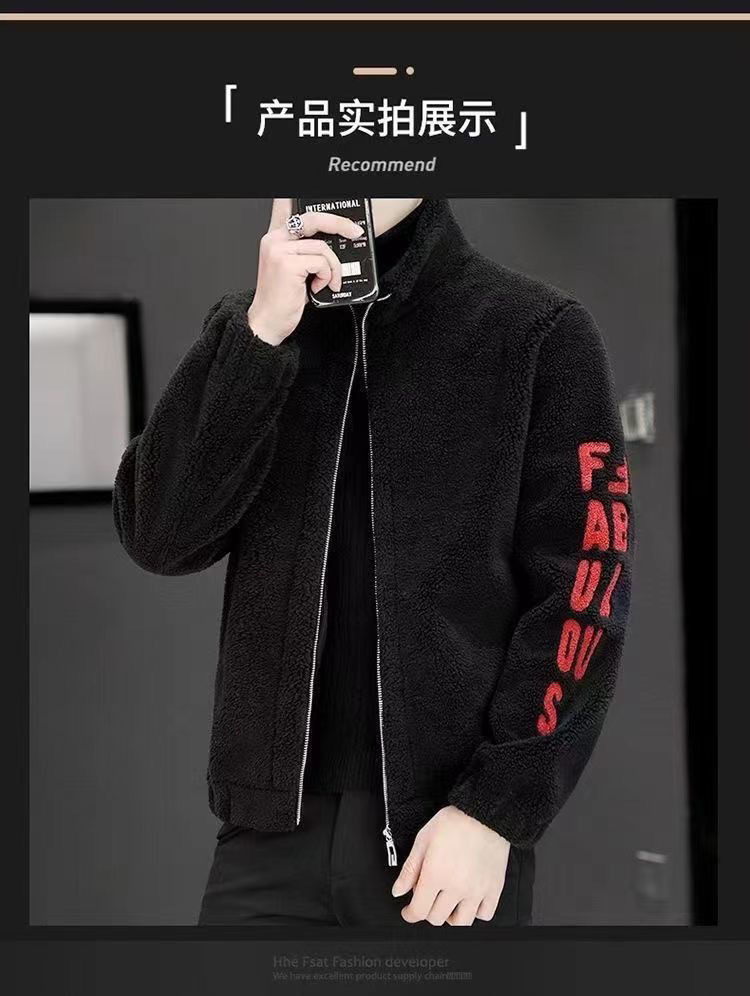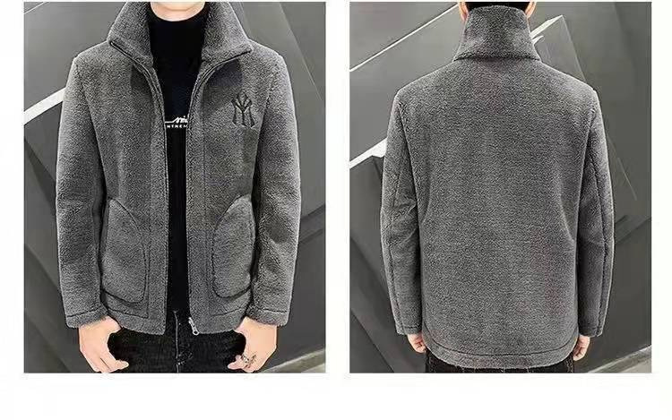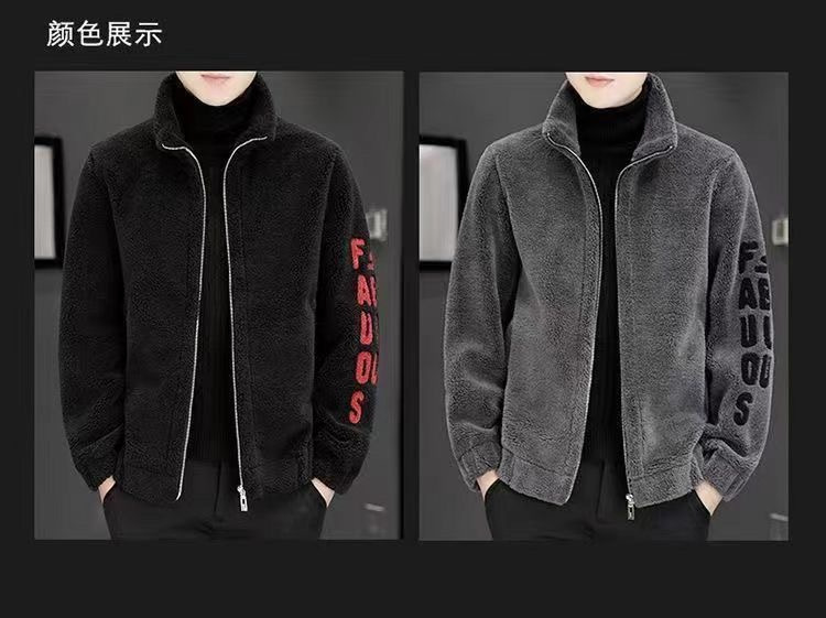 남자 자켓 가을과 겨울 샤어링 칼라 재킷 남자 자수 스웨트 셔츠 울 원피스 양가죽 남자 자켓