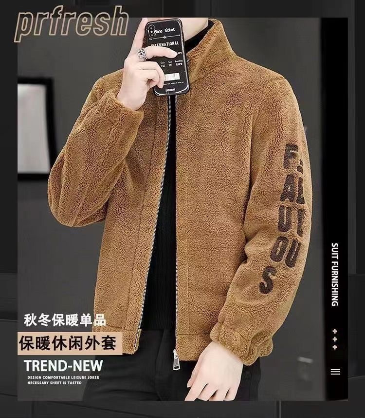남자 자켓 가을과 겨울 샤어링 칼라 재킷 남자 자수 스웨트 셔츠 울 원피스 양가죽 남자 자켓스토어 가기