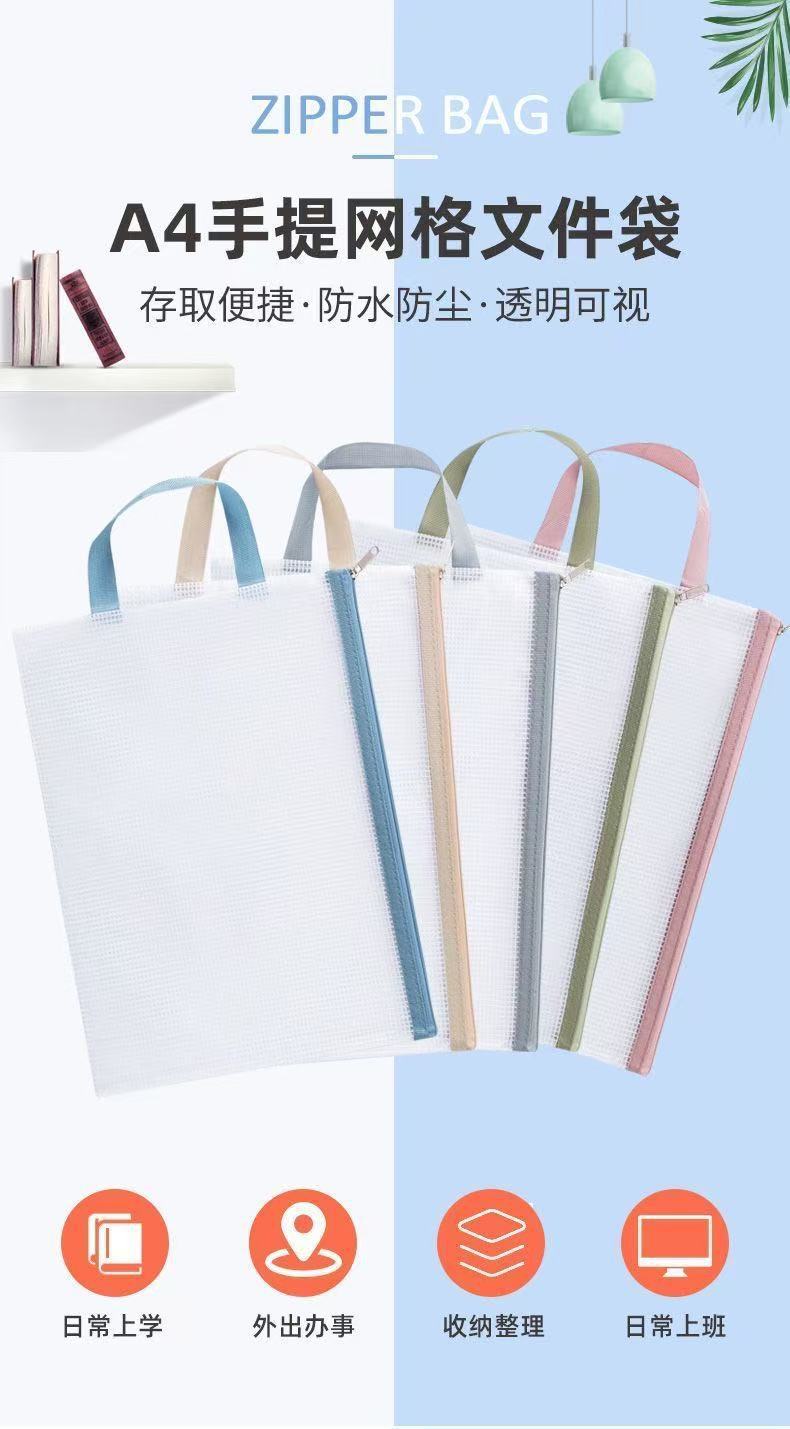 Morandi 투명 지퍼 가방 방수 휴대용 메쉬 가방 시험지 보관 정보 가방 사무실 문서 가방 인쇄 가능스토어 가기