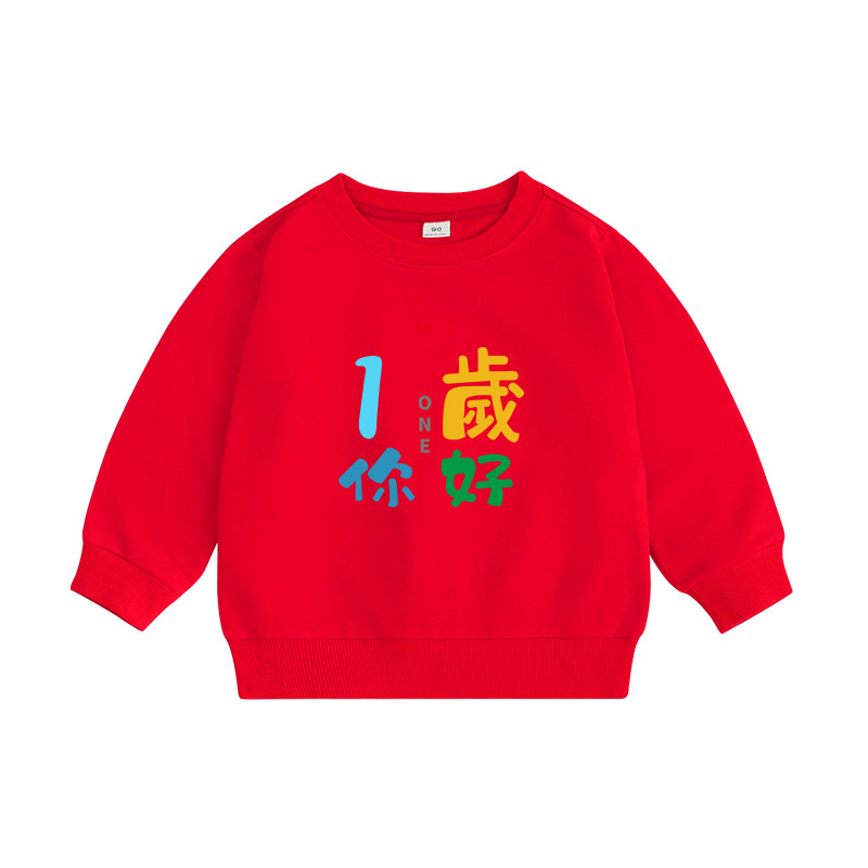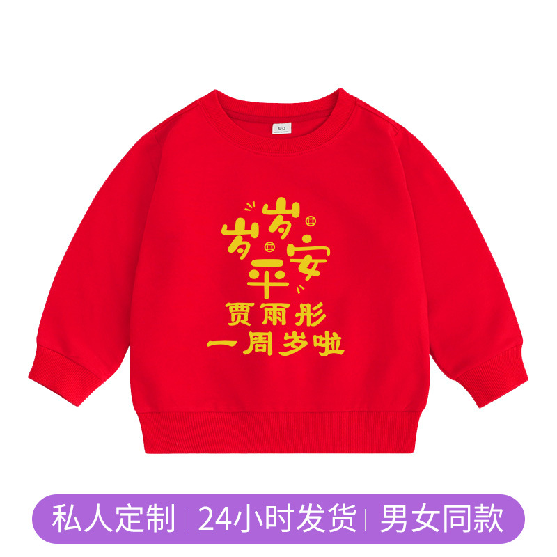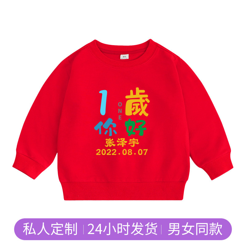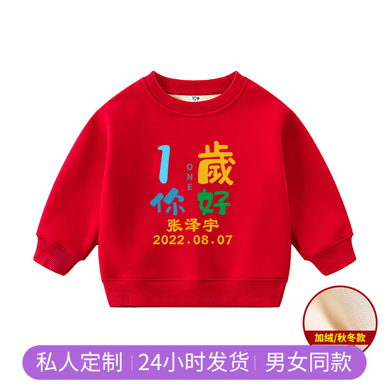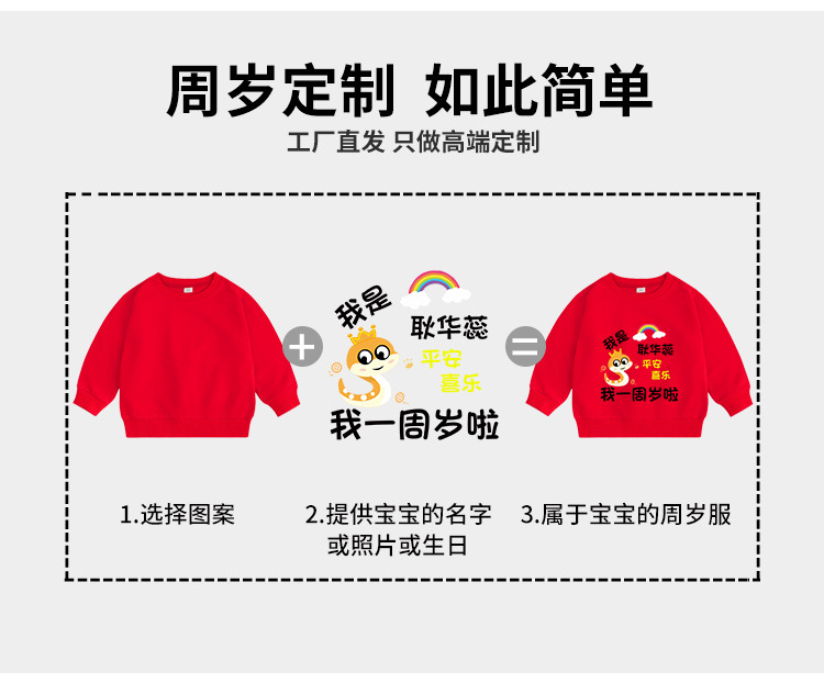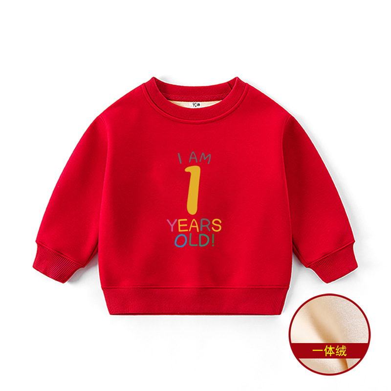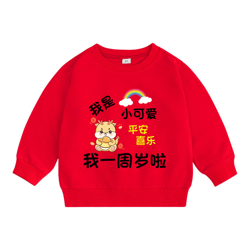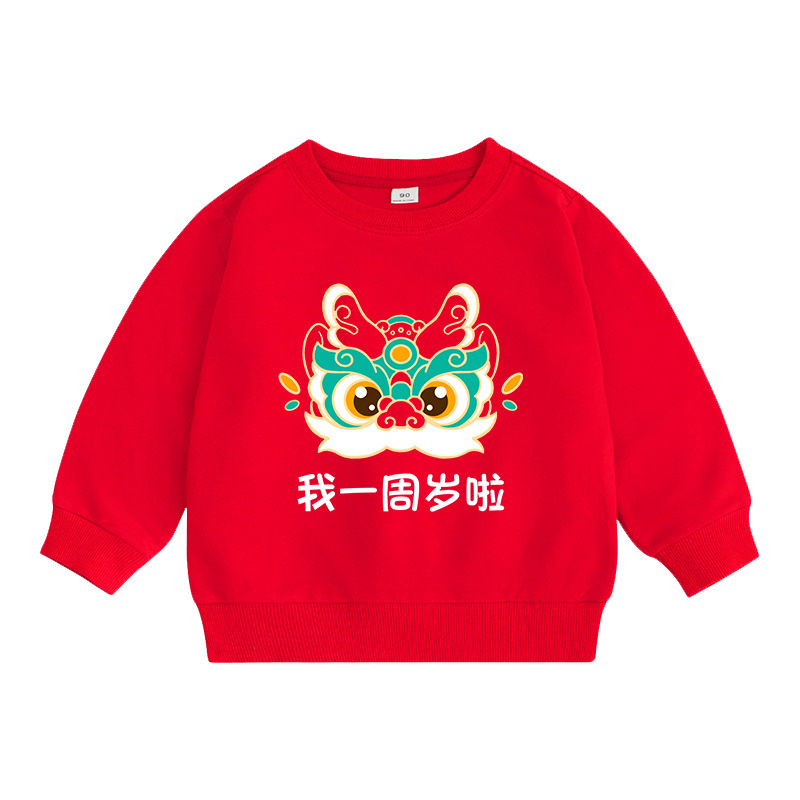 롱바오 1세 남아용 기모 스웨트셔츠 생일 축하 의상 1주년 의상 남아용 빨간색 옷 남아 여아용스토어 가기