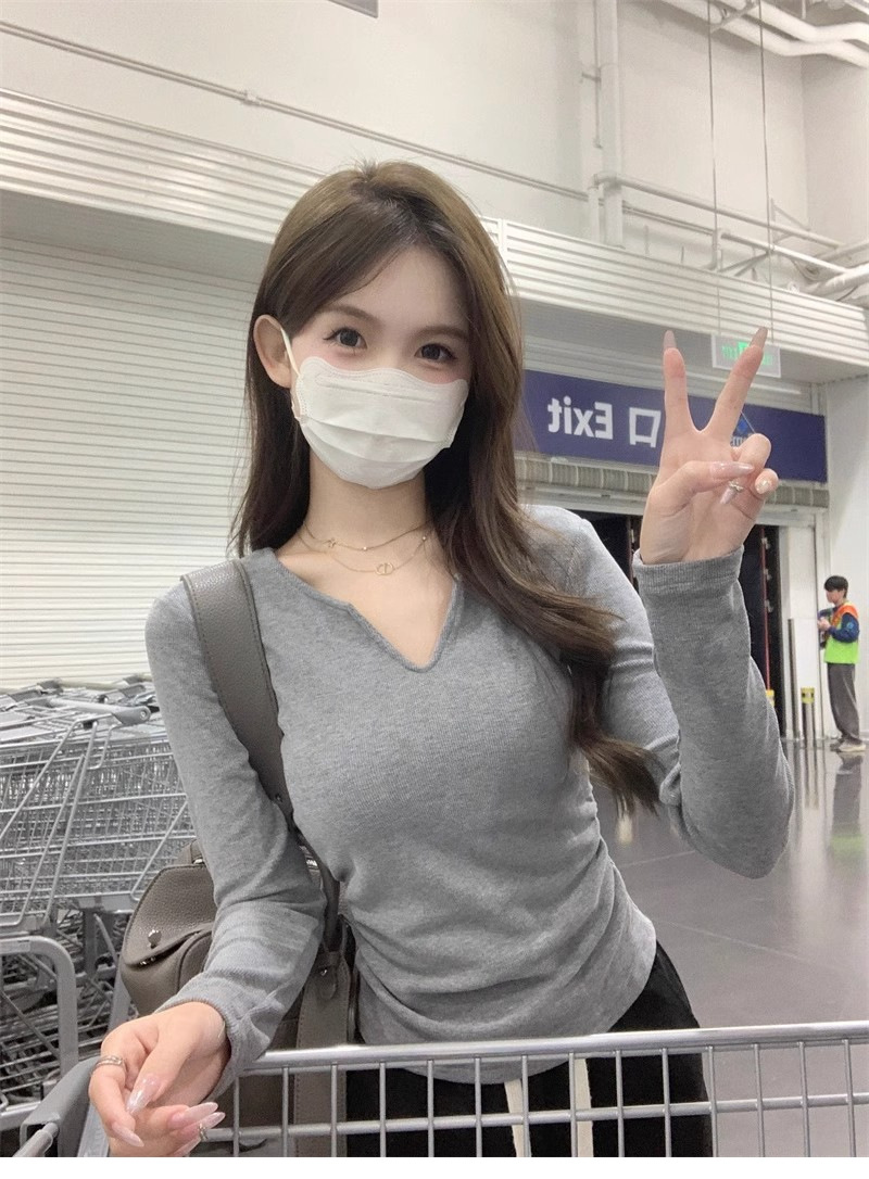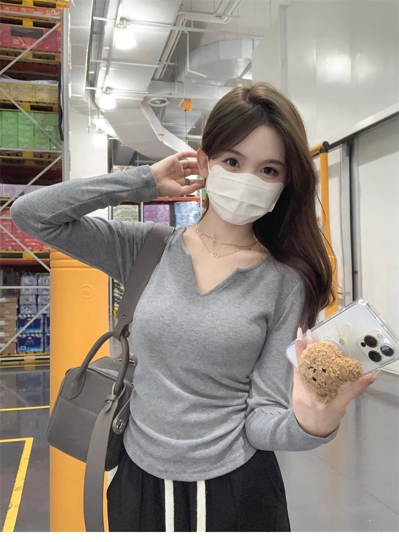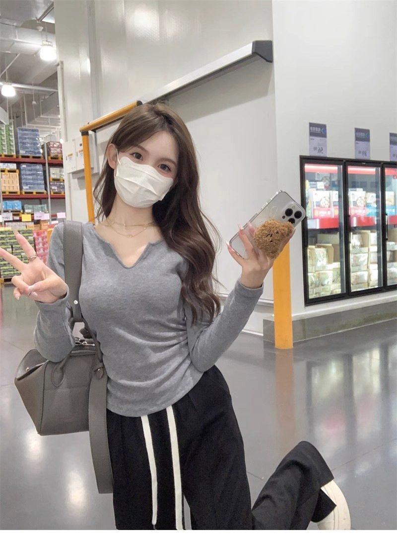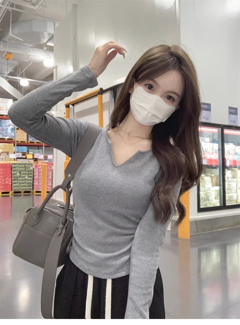 골지 벨벳베이스 셔츠 타이트 허리 슬리밍 긴팔 티셔츠 겉옷 가을과 겨울 내부 탑스토어 가기