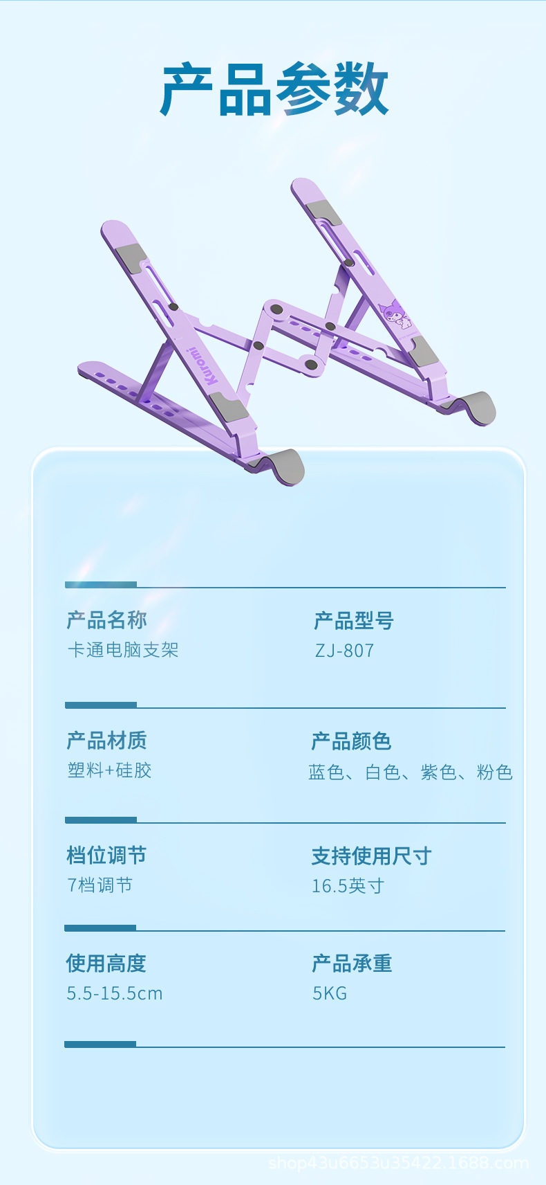 Sanrio 수직 노트북 스탠드 데스크탑 스토리지 조정 가능한 리프팅 랙 휴대용 스토리지 냉각 재고스토어 가기