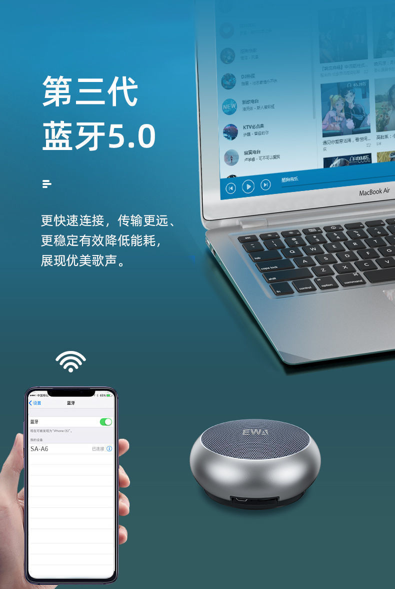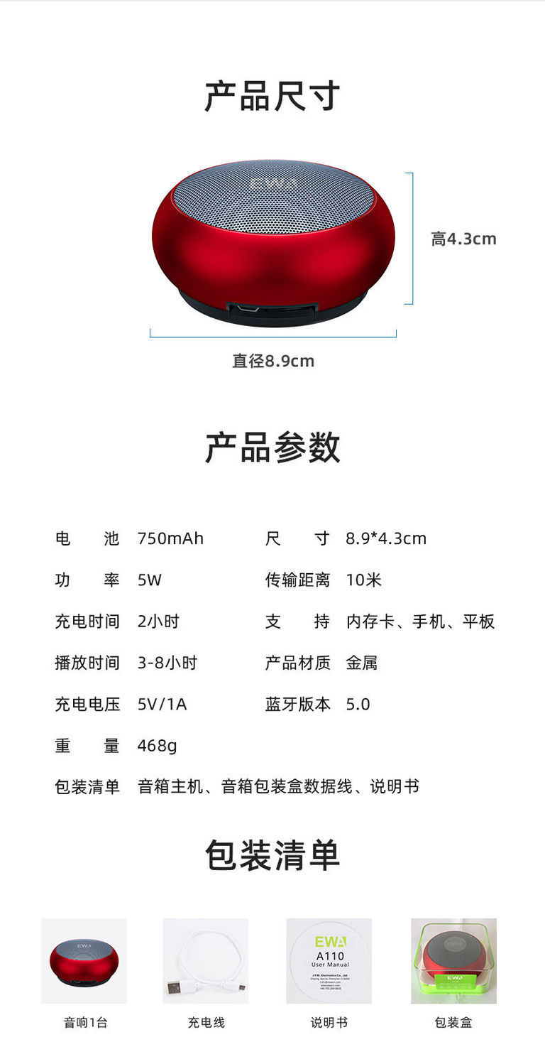 EWA/사랑을위한 오디오 A110 블루투스 스피커 데스크탑 오디오 스테레오 메탈 서브 우퍼 돈 방송 카드 방수스토어 가기