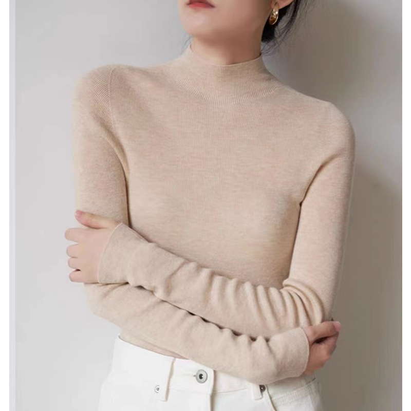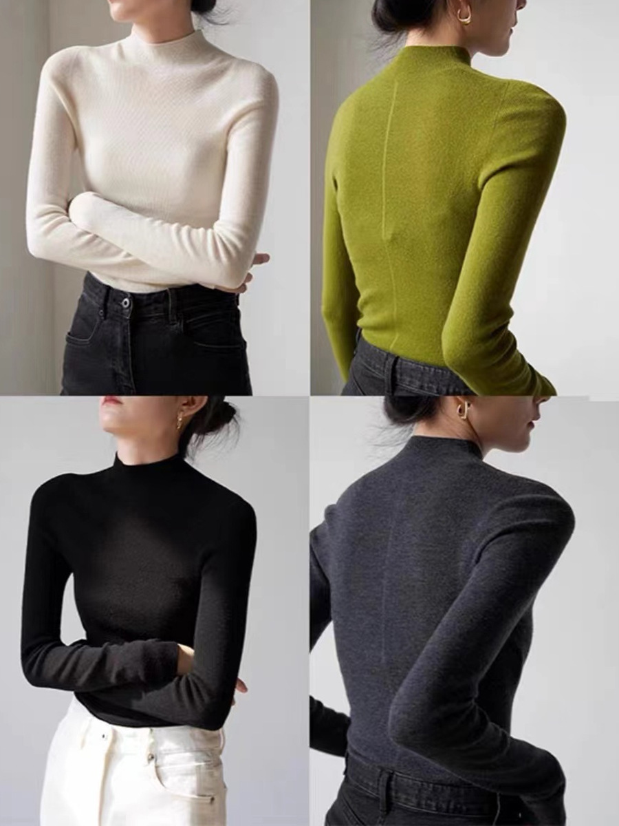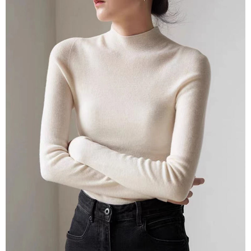 원활한 올인원 통근 우아한 하프 하이 칼라 울 스웨터 여성의 가을베이스 탑스토어 가기