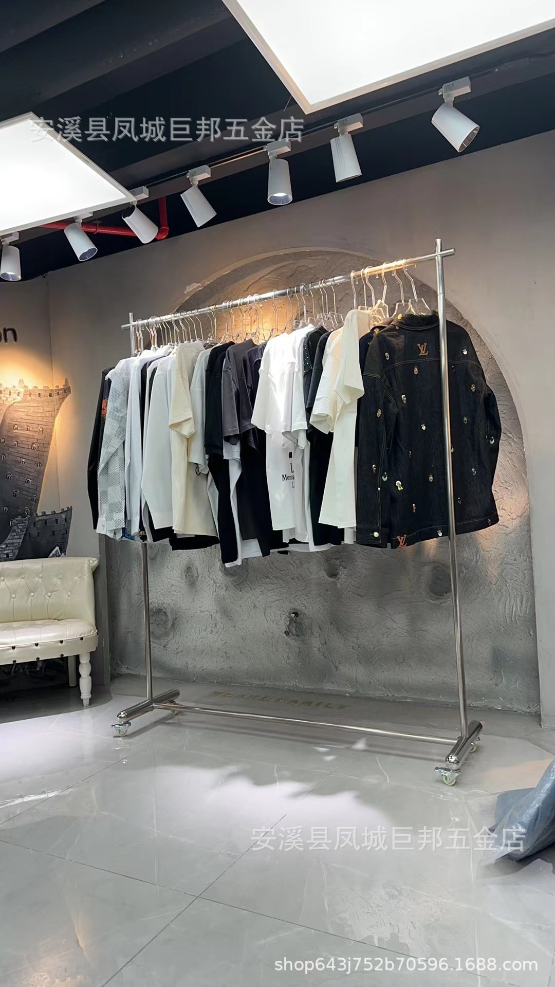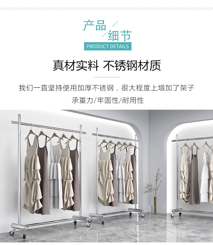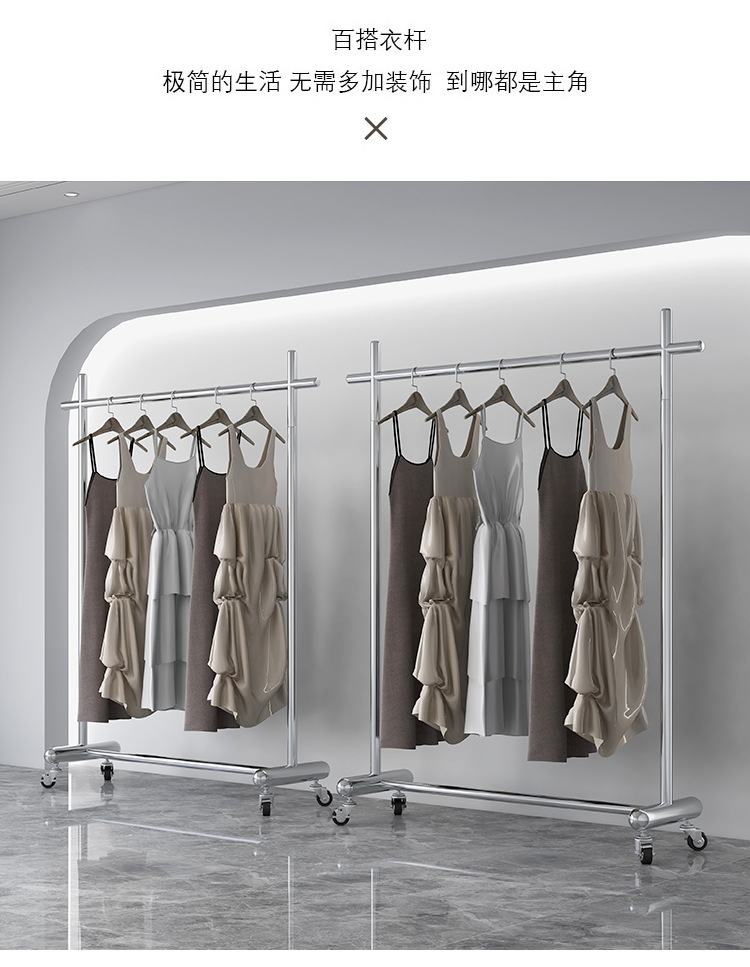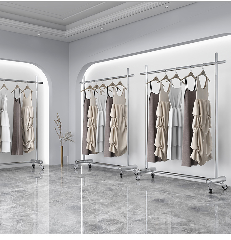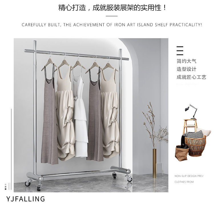 인터넷 연예인 여성 의류 매장 스테인레스 스틸 옷걸이 이동식 바퀴 달린 선반 거실 옷 교수형 막대 의류 매장 디스플레이 랙스토어 가기