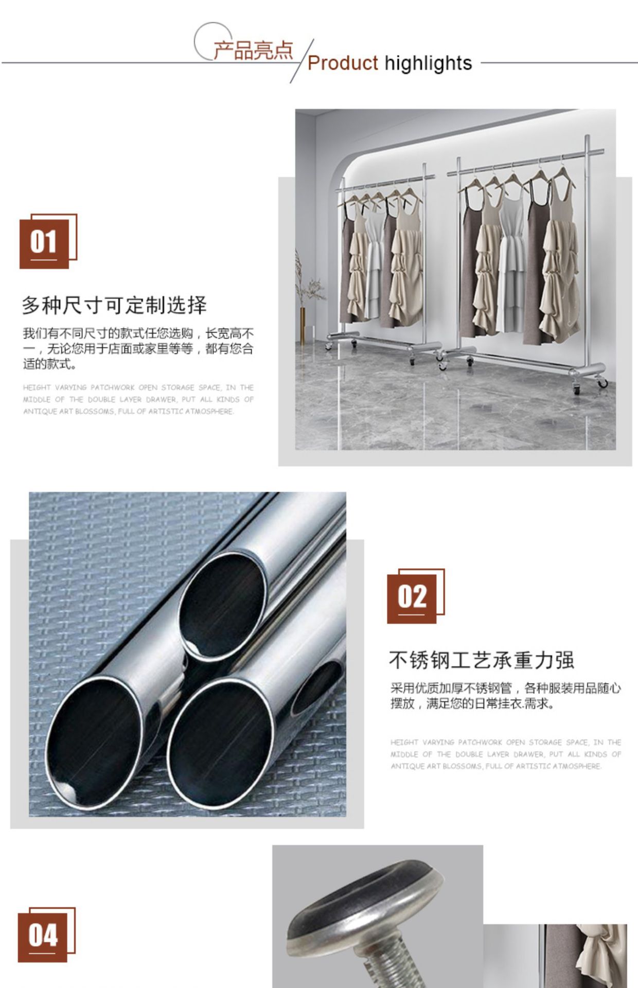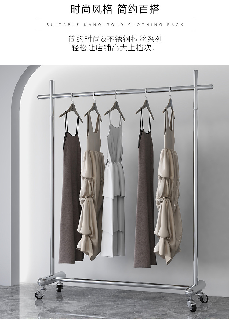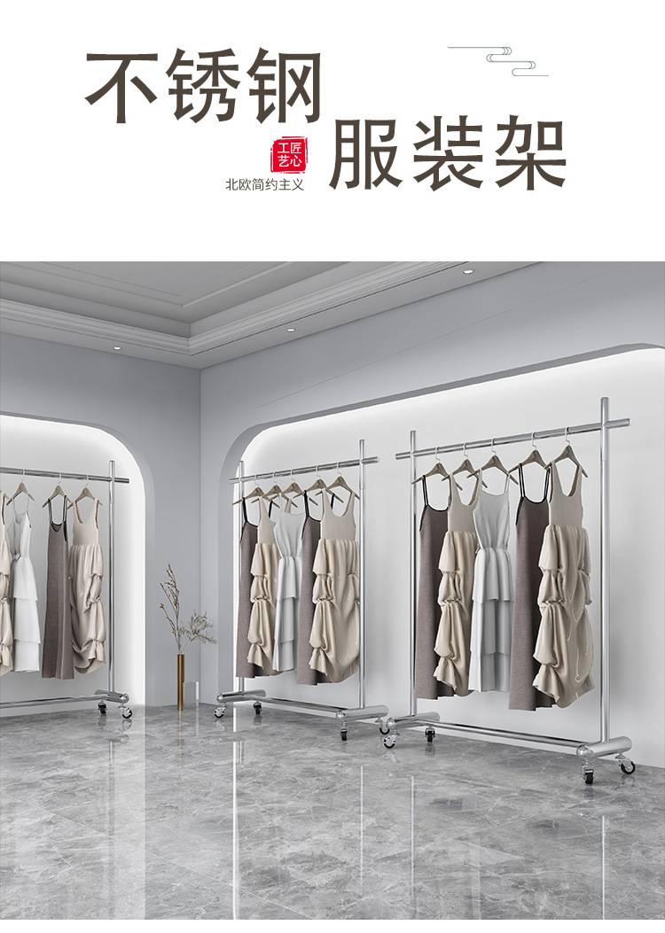 인터넷 연예인 여성 의류 매장 스테인레스 스틸 옷걸이 이동식 바퀴 달린 선반 거실 옷 교수형 막대 의류 매장 디스플레이 랙스토어 가기