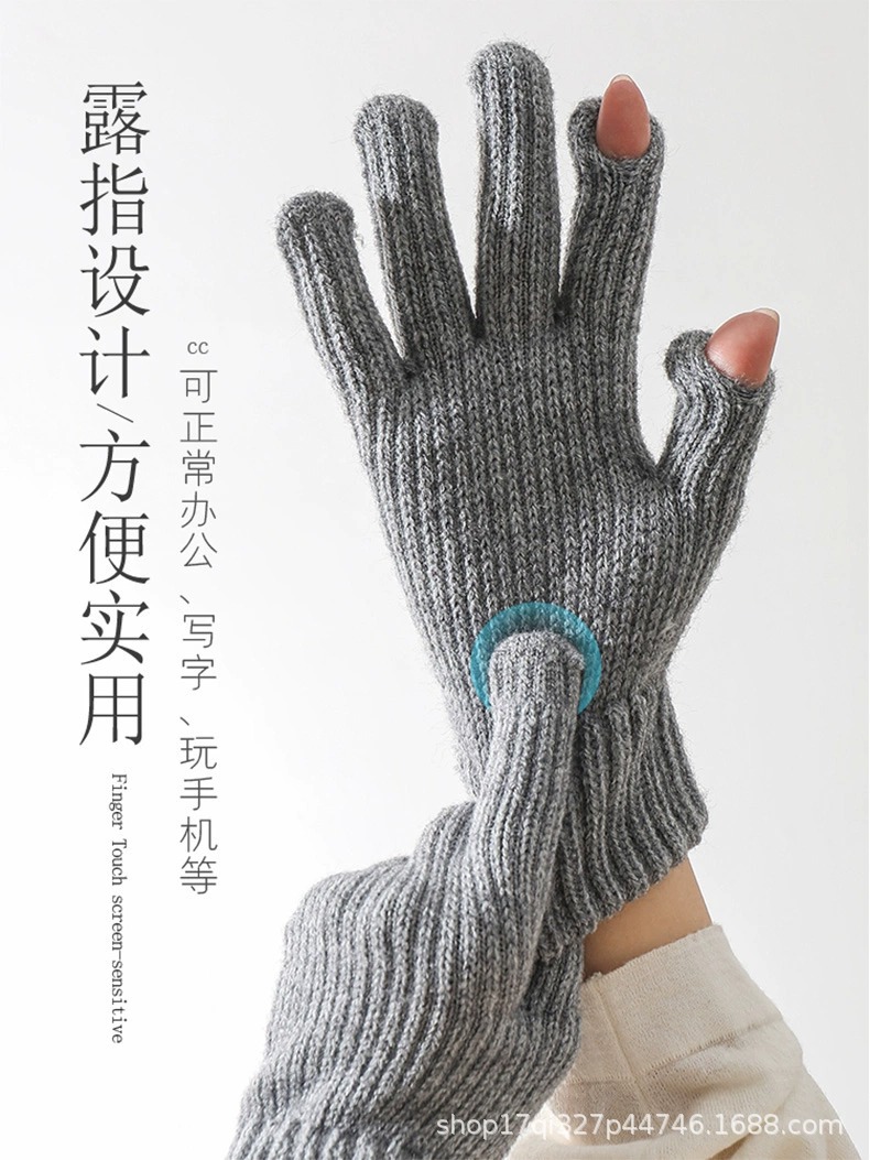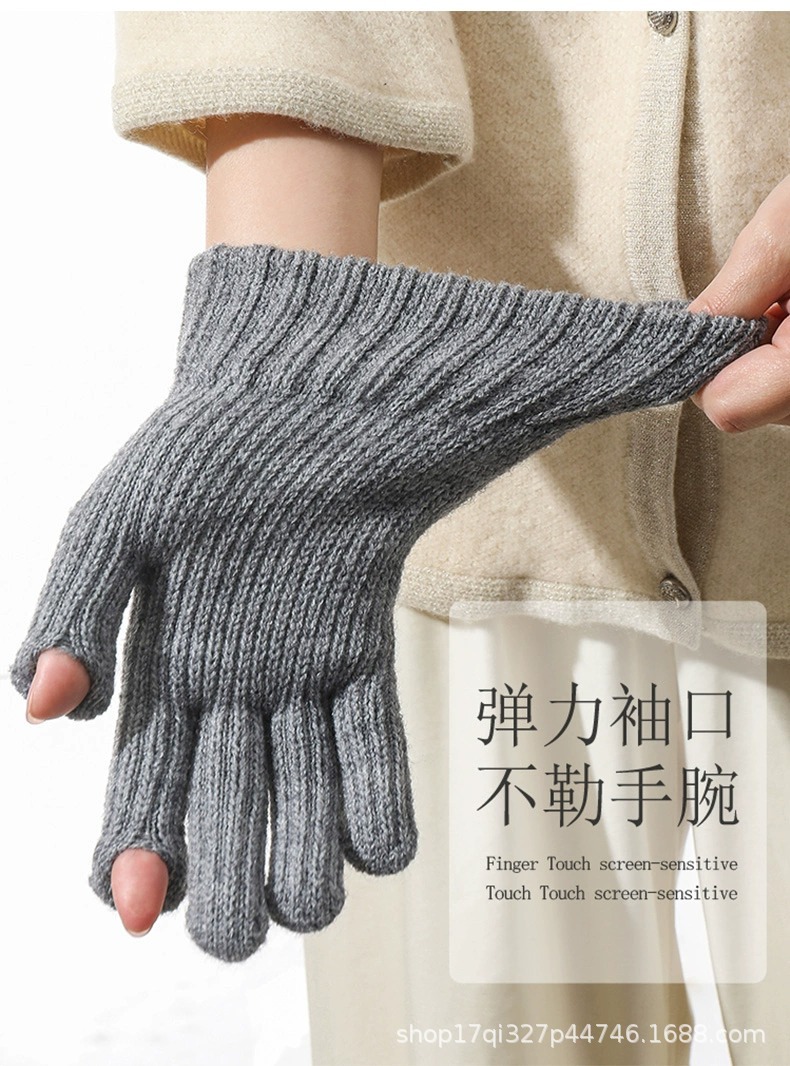 사이클링 방풍 운전 두꺼운 방한 울 니트 따뜻한 장갑 여자의 겨울 남자의 터치 스크린 다섯 손가락스토어 가기
