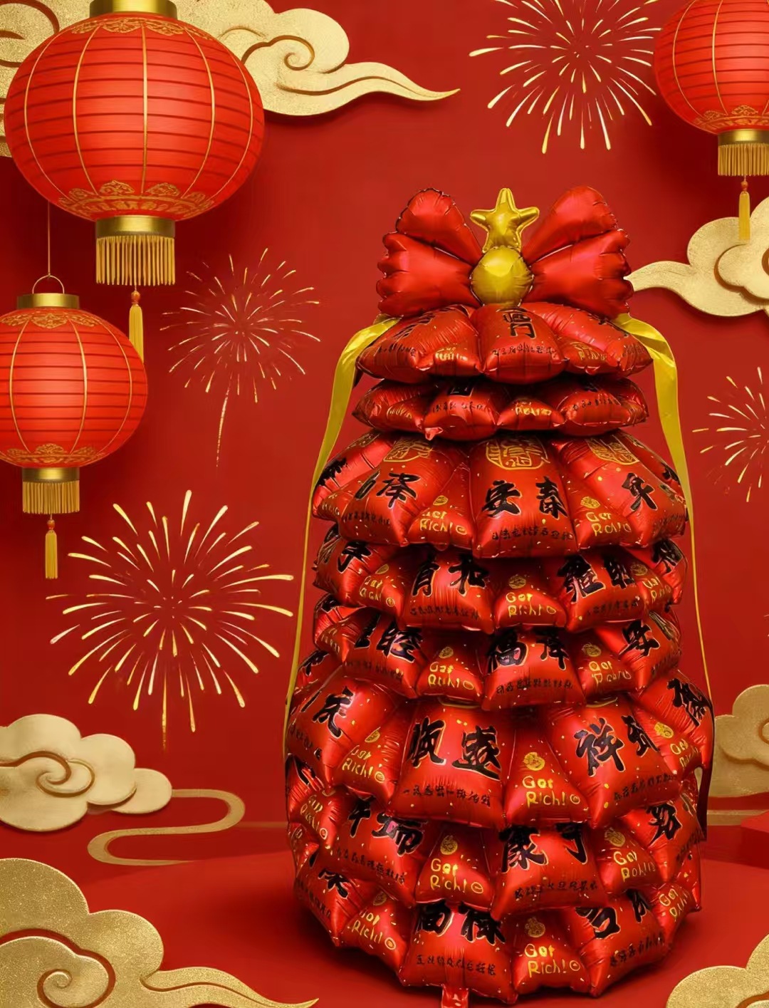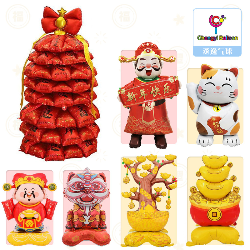 국경을 넘는 기운을 주는 신상품: 행운의 고양이, 축복의 사자, 행운의 나무, 알루미늄 필름 풍선, 새해 장식 용품