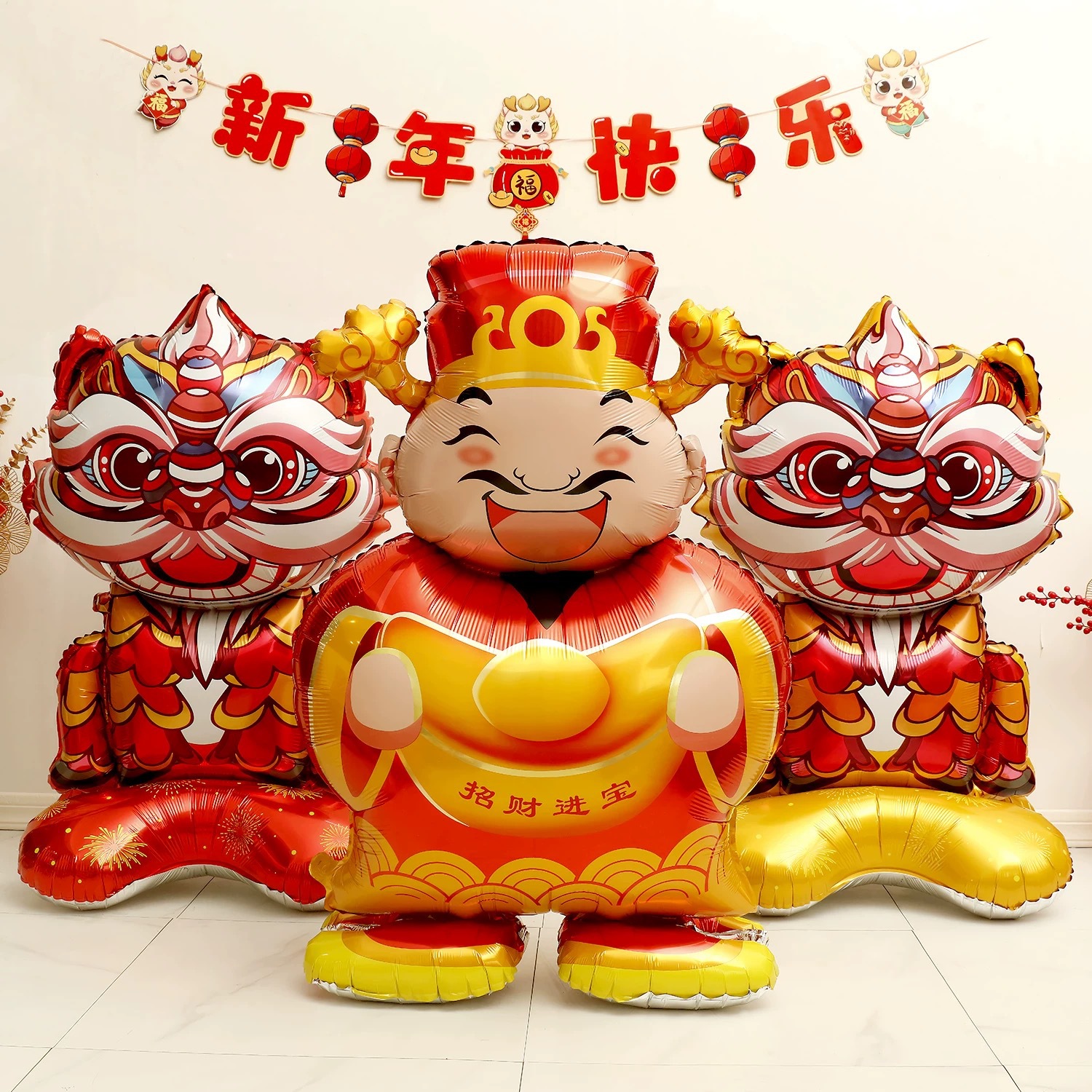국경을 넘는 기운을 주는 신상품: 행운의 고양이, 축복의 사자, 행운의 나무, 알루미늄 필름 풍선, 새해 장식 용품스토어 가기