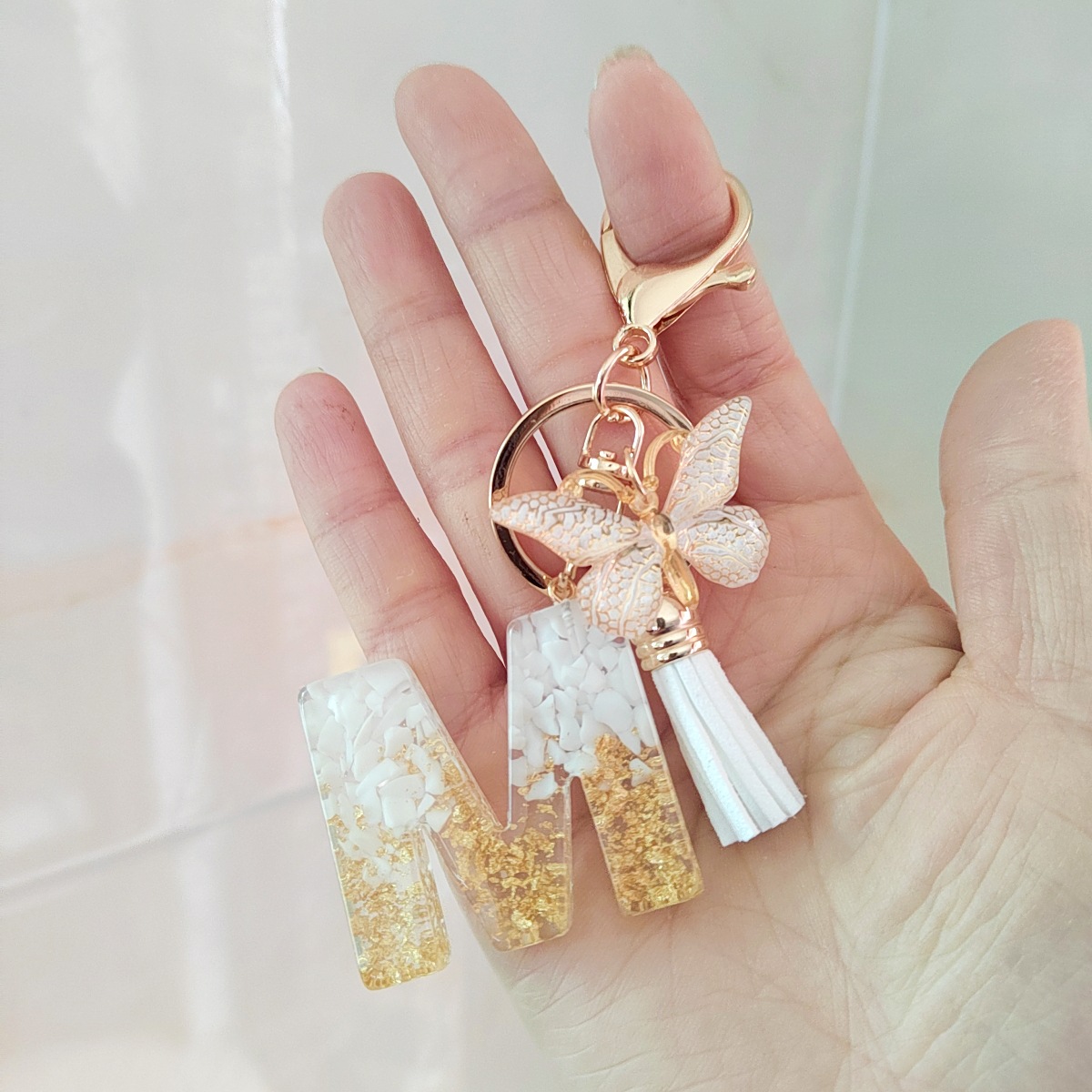 • 골드 + 화이트 혼합 컬러 문자 열쇠 고리 펜던트-M