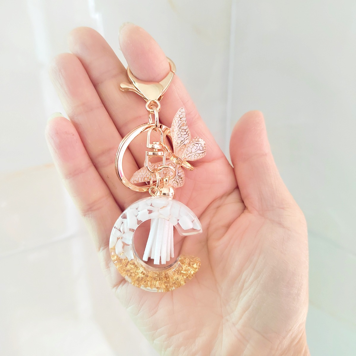 • 골드 + 화이트 혼합 컬러 문자 키 체인 펜던트-C