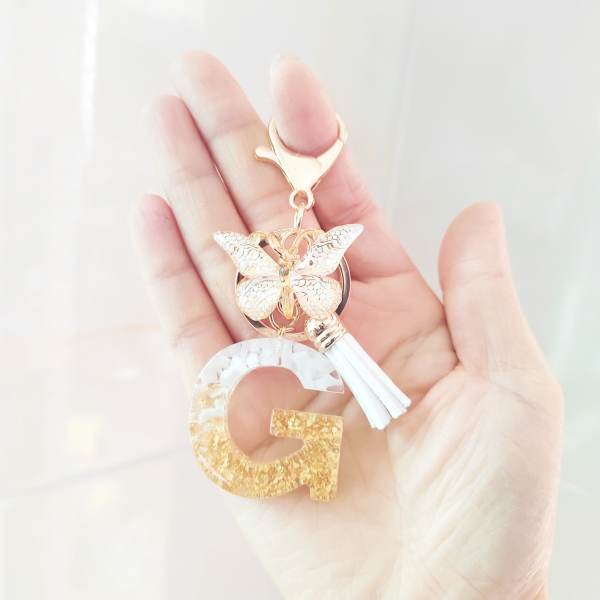 • 골드 + 화이트 혼합 컬러 문자 열쇠 고리 펜던트-G