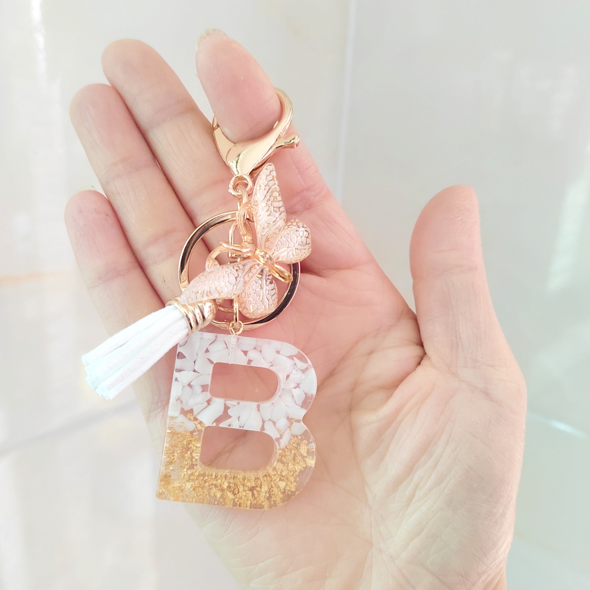 • 골드 + 화이트 혼합 컬러 문자 열쇠 고리 펜던트-O