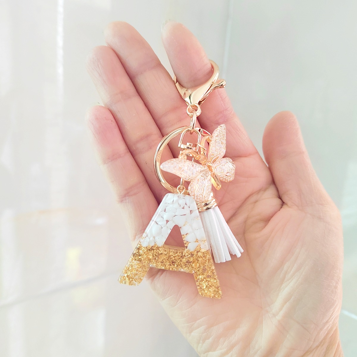 • 골드 + 화이트 혼합 컬러 문자 열쇠 고리 펜던트-A