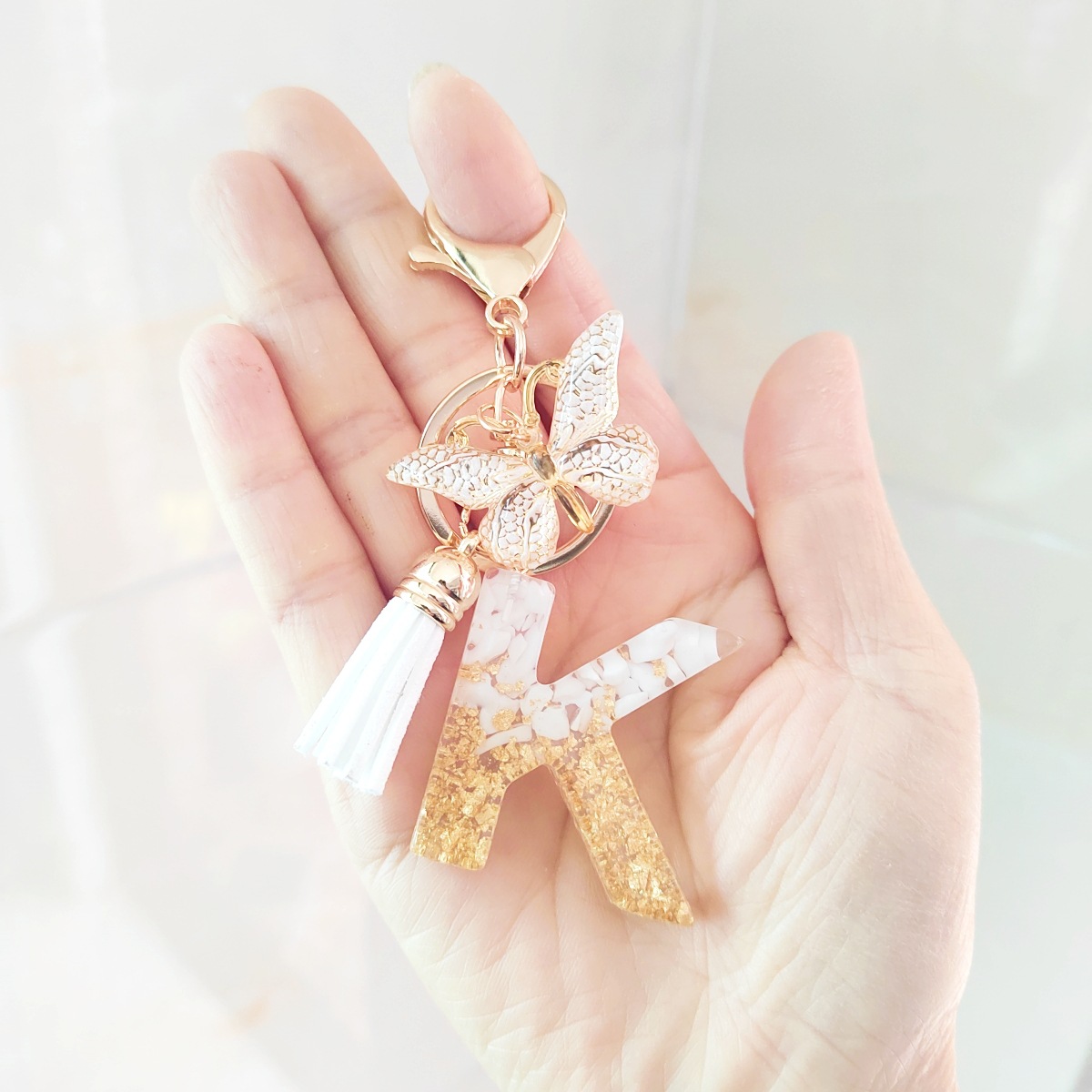 • 골드 + 화이트 혼합 컬러 문자 열쇠 고리 펜던트-K