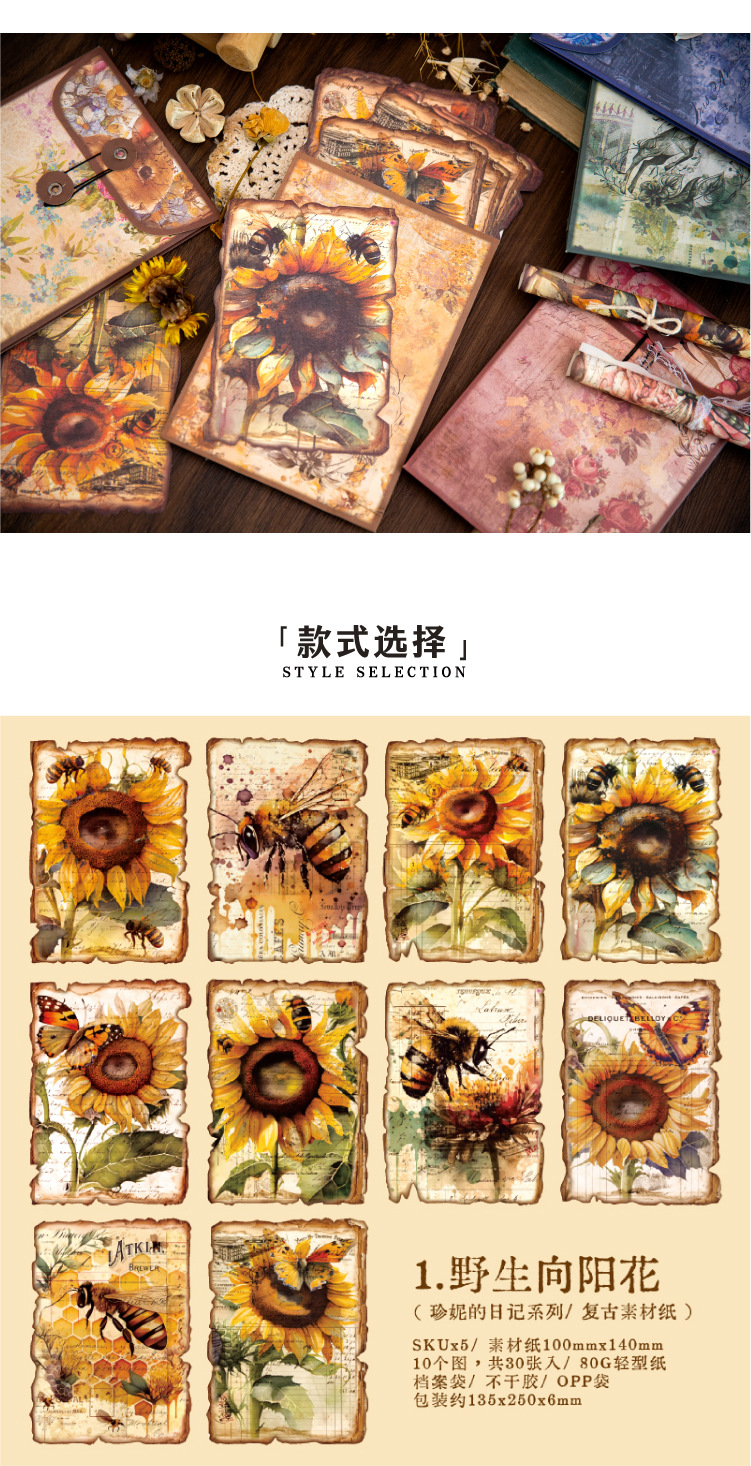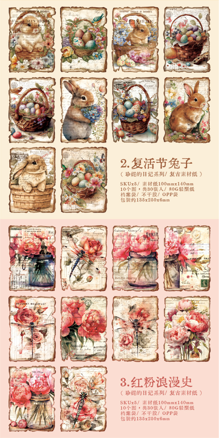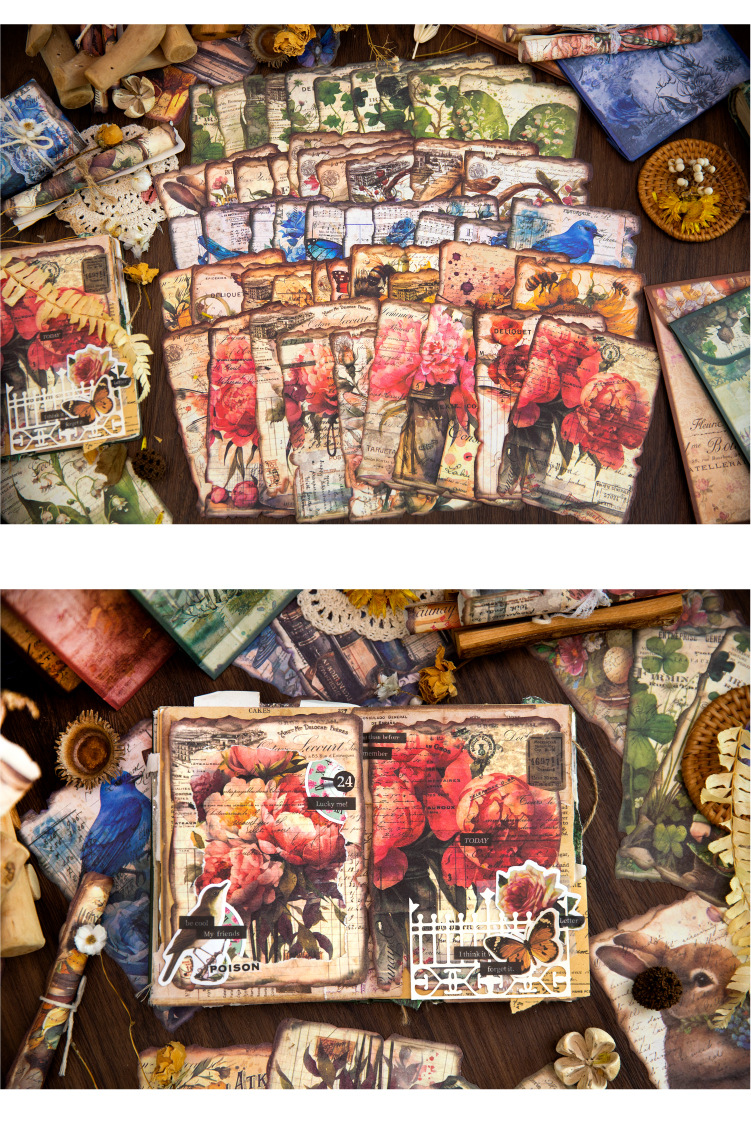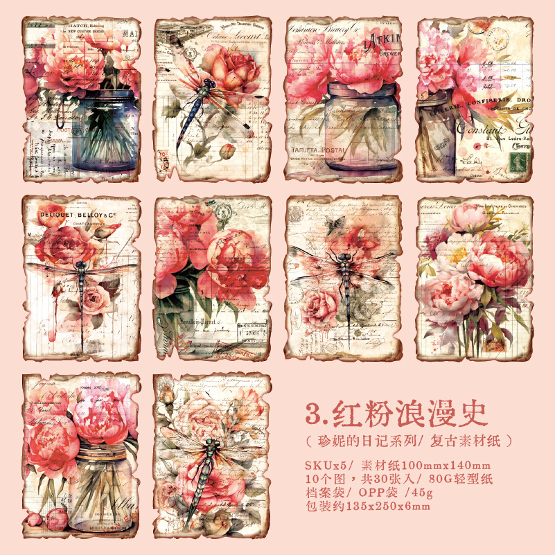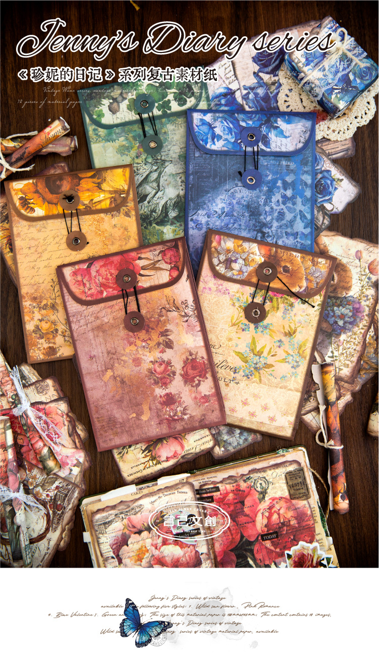 Yan Ji 재료 종이 제니의 일기 시리즈 복고풍 식물 꽃 손 계정 DIY 장식 배경 뒷면 종이스토어 가기