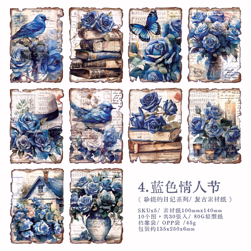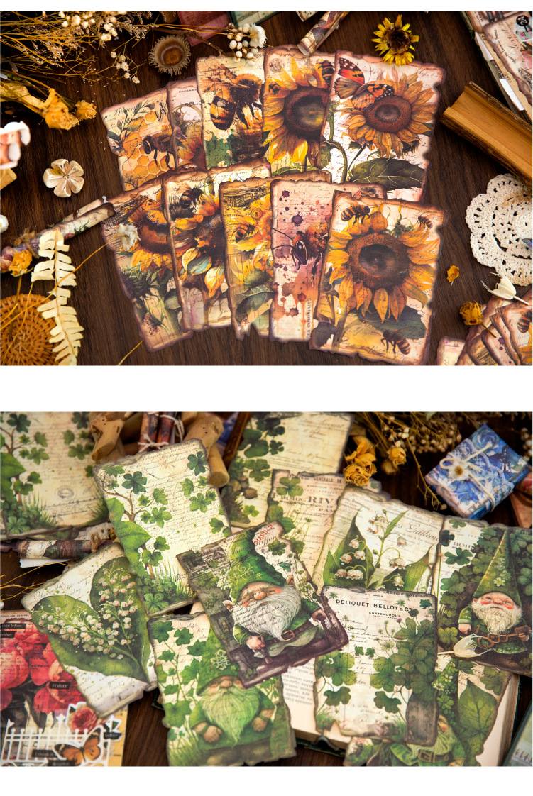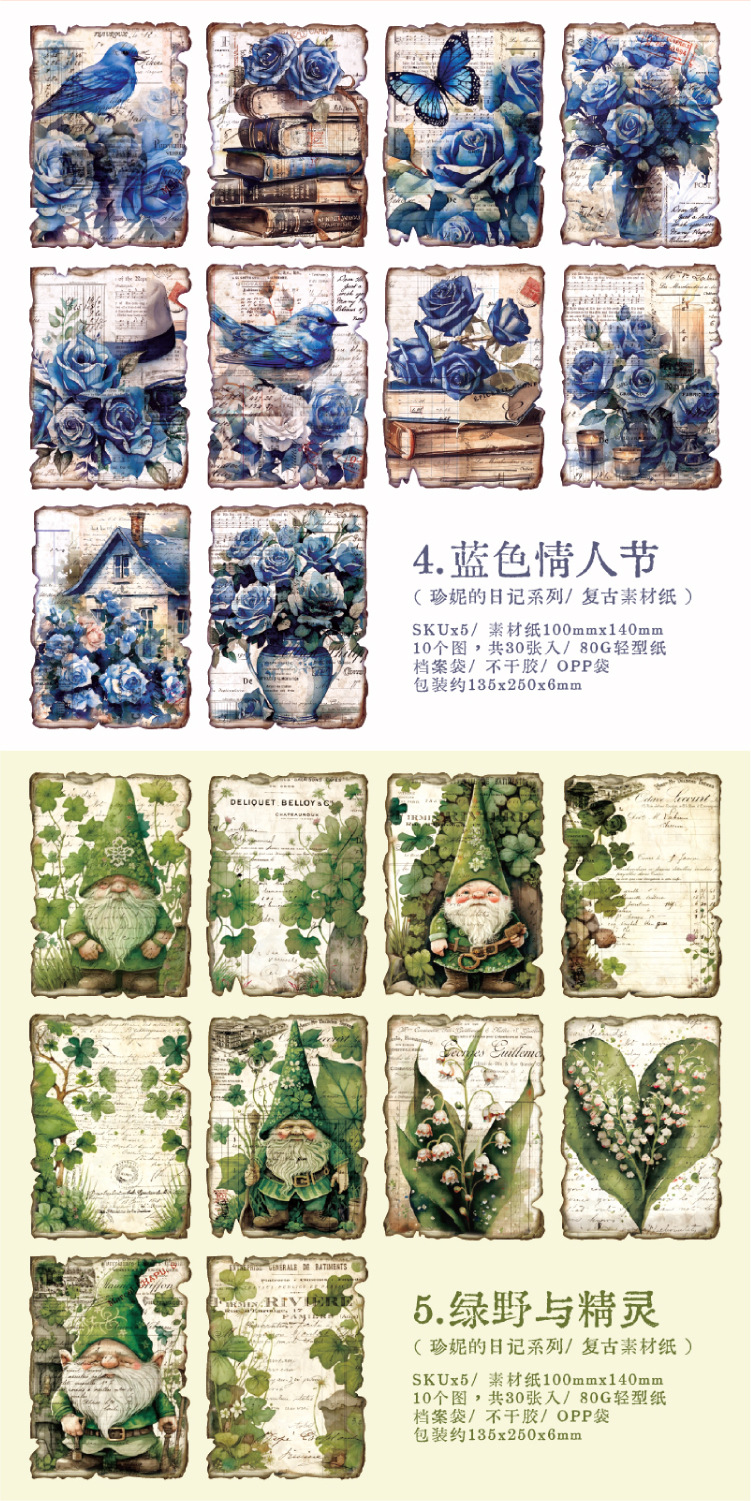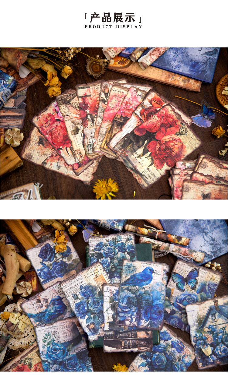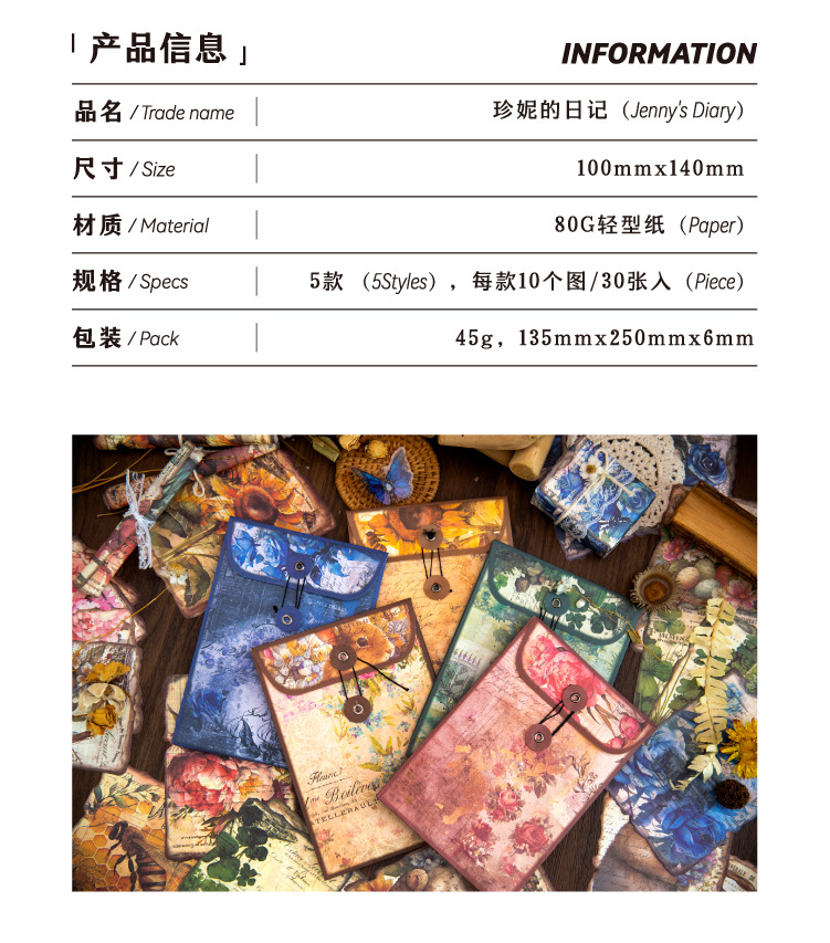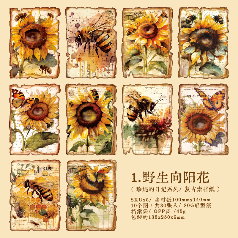 Yan Ji 재료 종이 제니의 일기 시리즈 복고풍 식물 꽃 손 계정 DIY 장식 배경 뒷면 종이스토어 가기