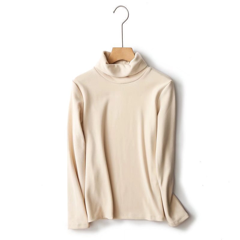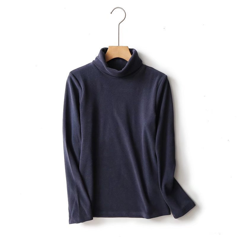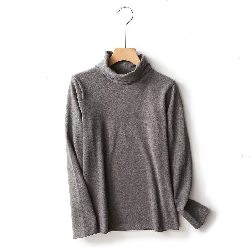 가을 2022 새로운 여성용 하이 칼라 슬림핏 슬리밍 솔리드 컬러 긴팔 폴라 플리스 베이스 셔츠 여성용 긴팔 티셔츠 탑