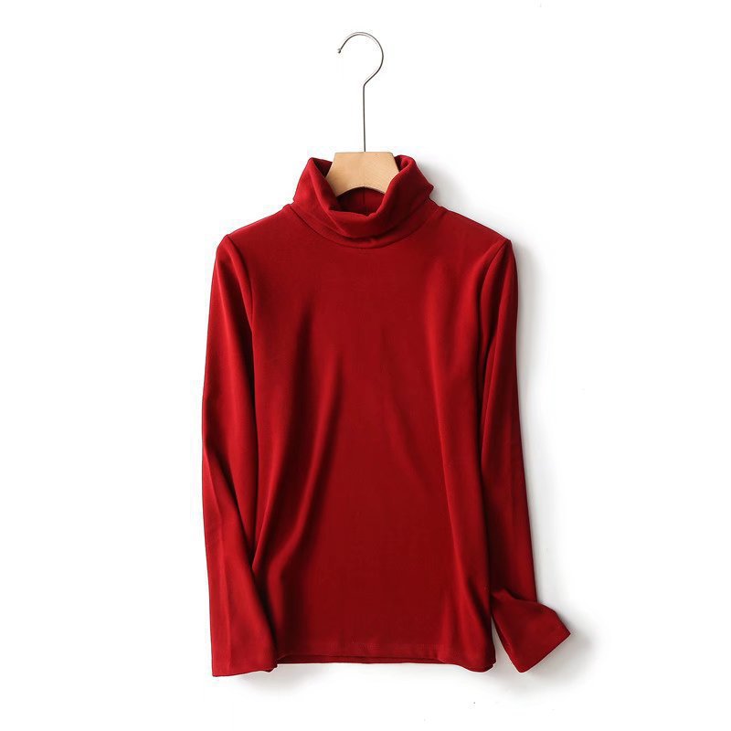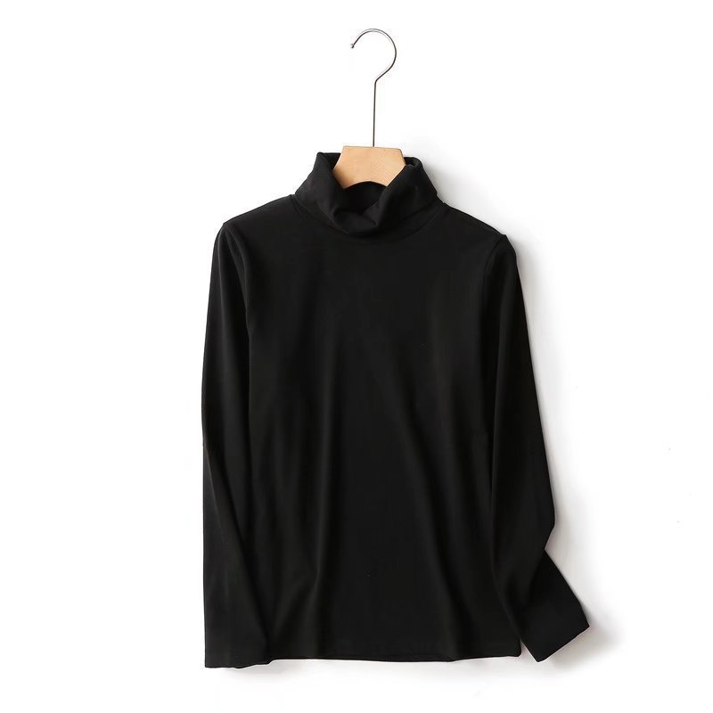가을 2022 새로운 여성용 하이 칼라 슬림핏 슬리밍 솔리드 컬러 긴팔 폴라 플리스 베이스 셔츠 여성용 긴팔 티셔츠 탑스토어 가기