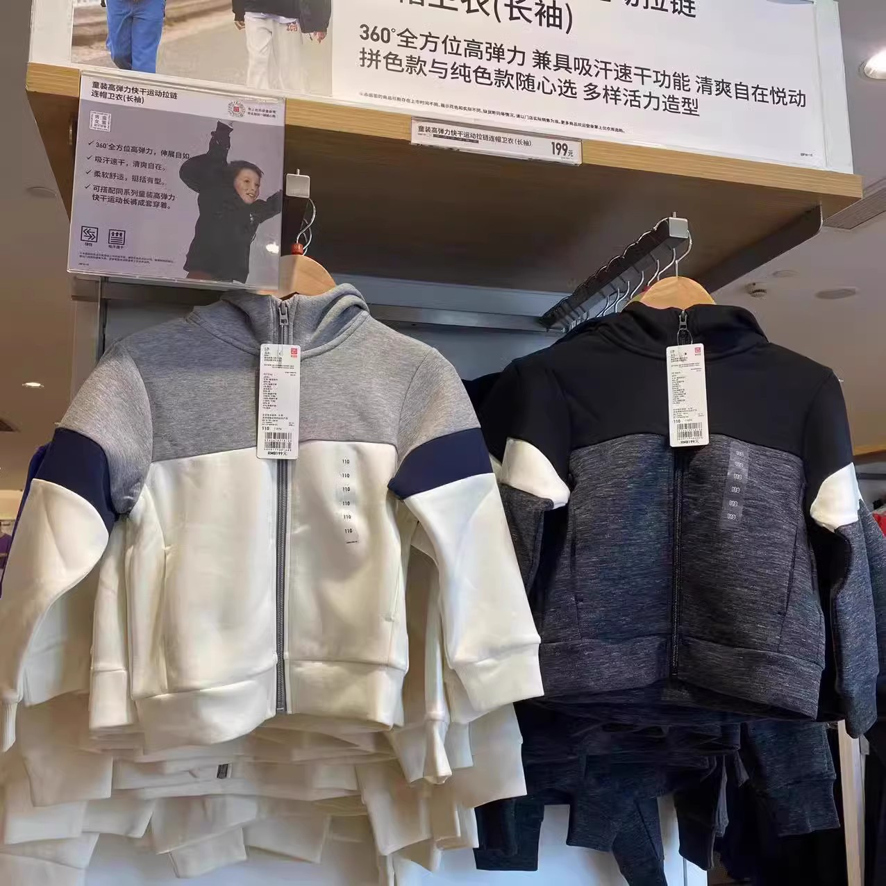 소년과 소녀를위한 일본 단일 가을 아동복 높은 탄성 빠른 건조 스포츠 지퍼 후드 스웨터 긴 소매 코트 460084