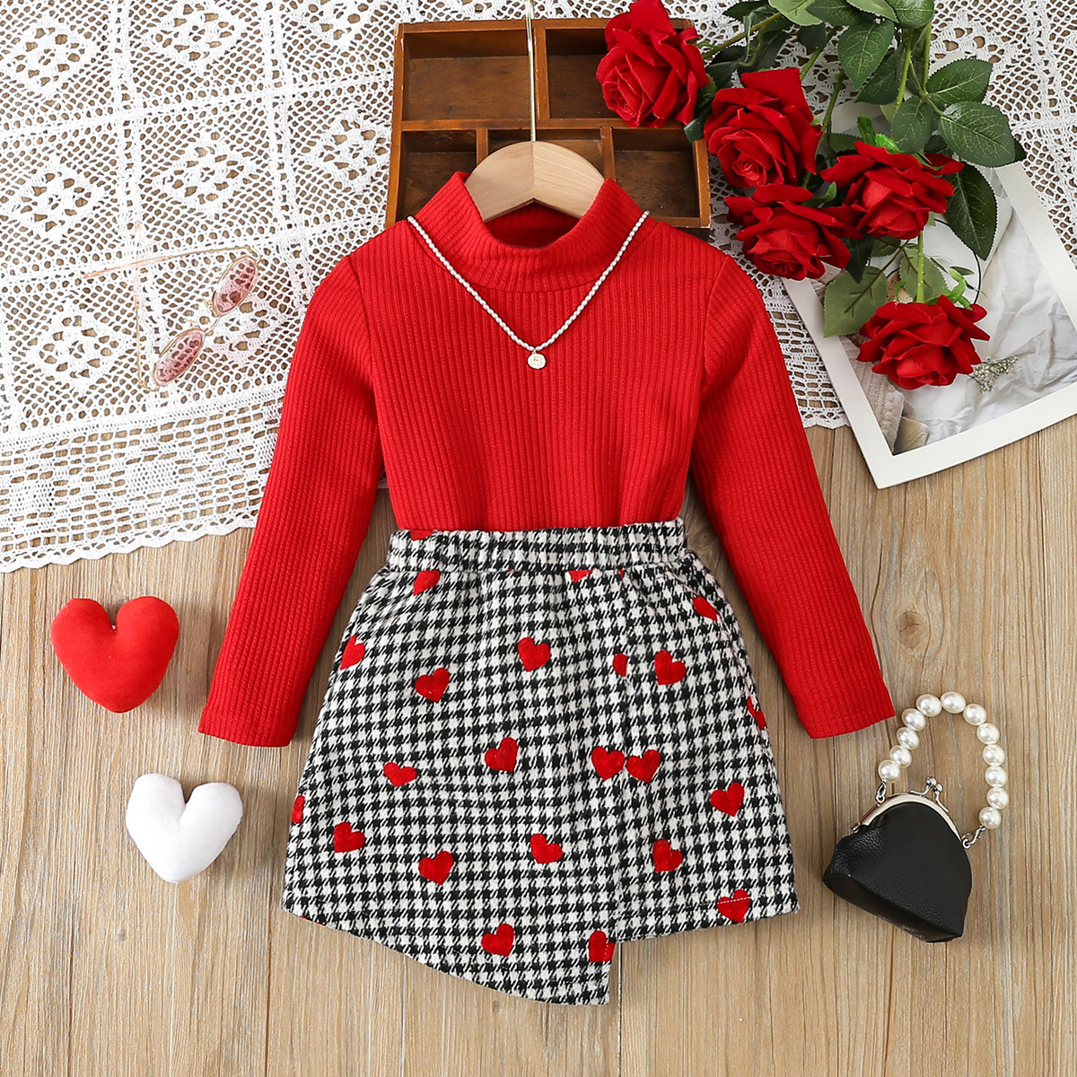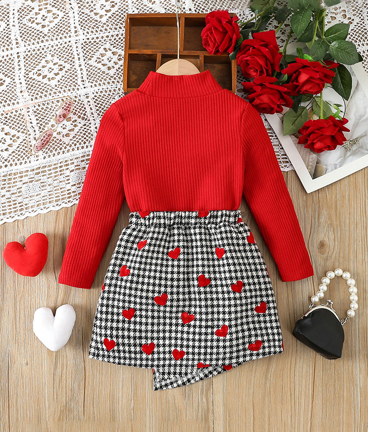 소녀 세트 가을과 겨울 새로운 아기 소녀 달콤한 니트 톱 스커트 투피스 서양식 어린이 레드 스웨터