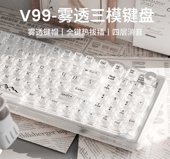 Forerunner V99 투명 기계 키보드 무선 블루투스 3 모드 사무실 핫 플러그인 고객이 만든 높은 색상 가치 사무실