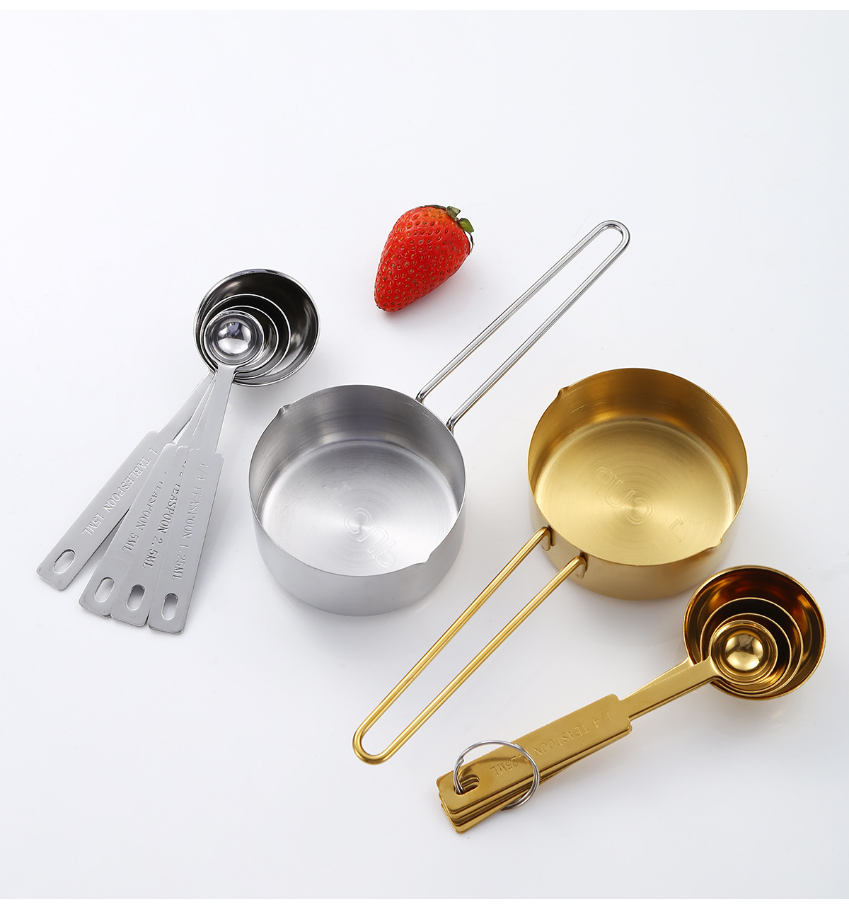 스테인레스 스틸 측정 컵 측정 숟가락 세트 커피 조미료 호텔 베이킹 주방 가제트 측정 숟가락 4 개 또는 8 개 세트