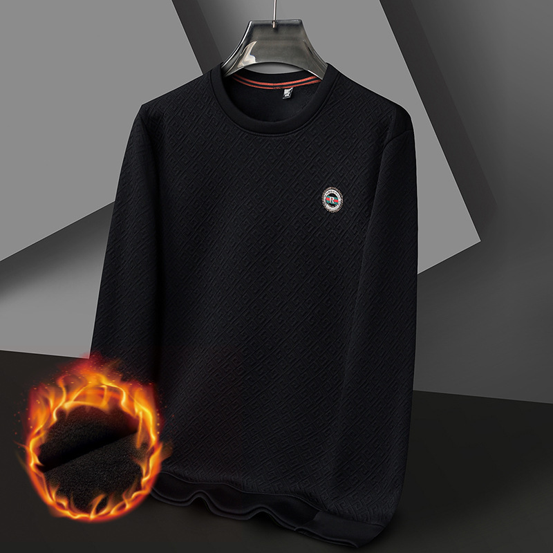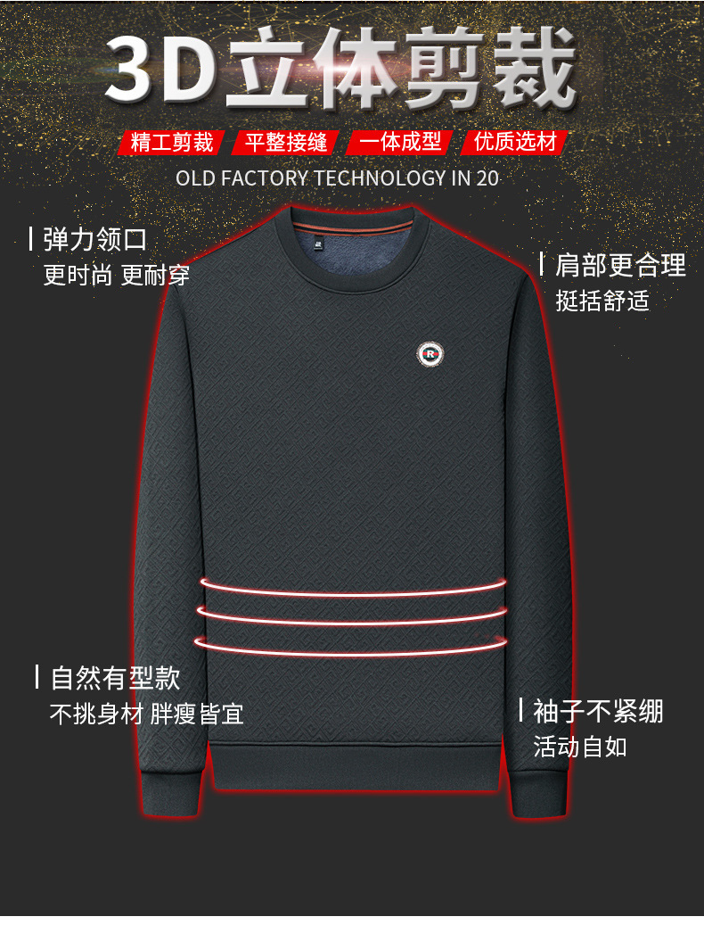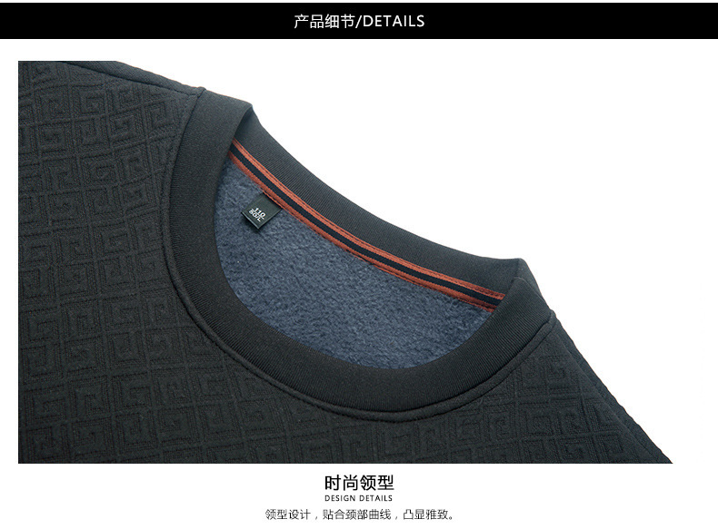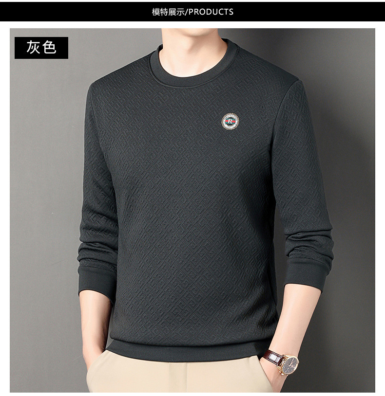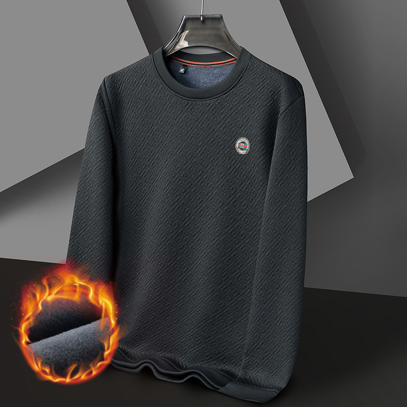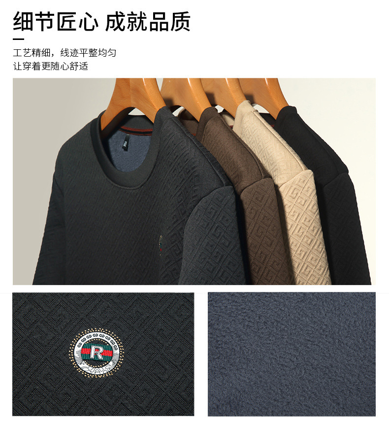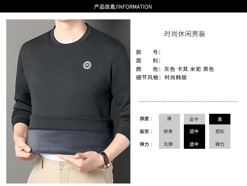 冬季新款加绒加厚保暖打底衫休闲加绒青年时尚简约暗纹卫衣T恤厚