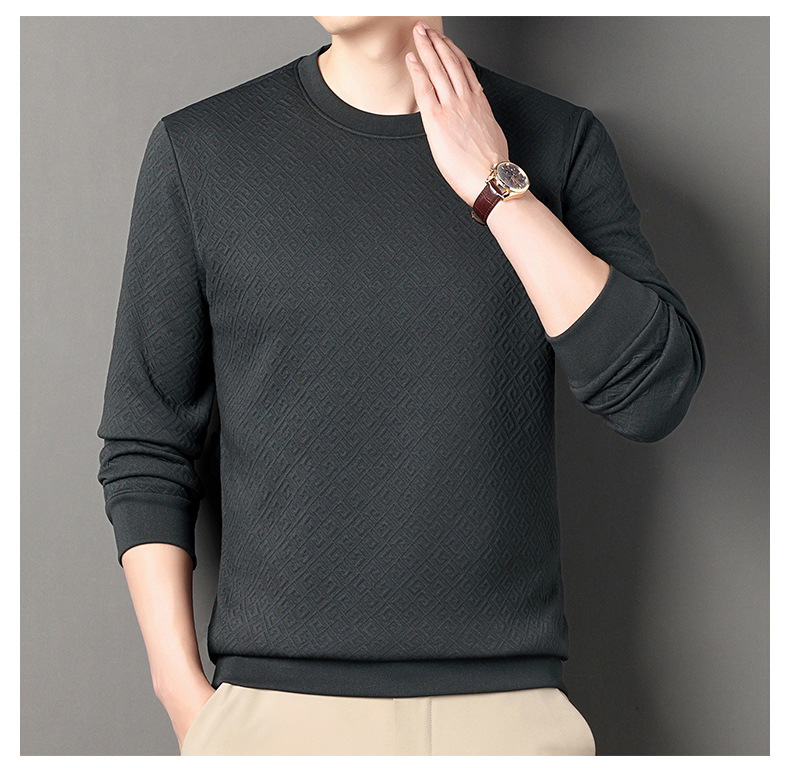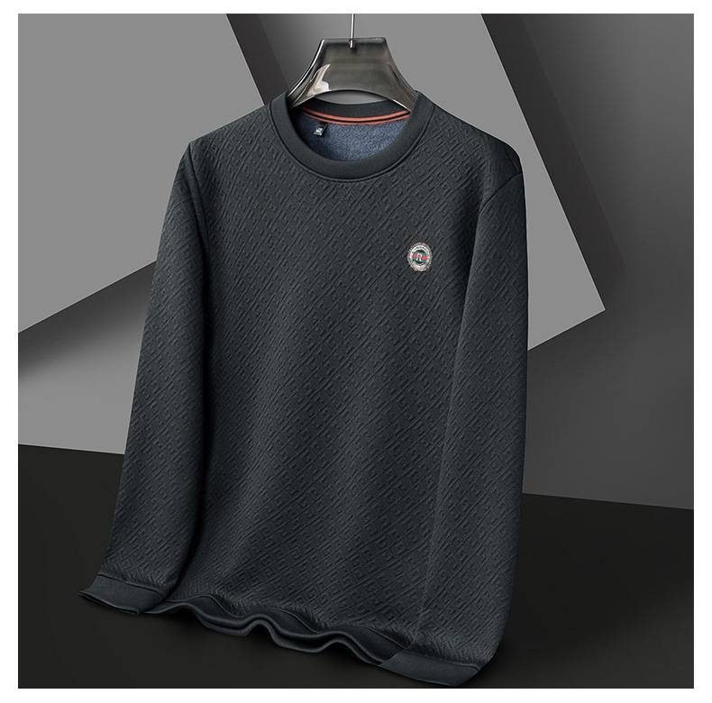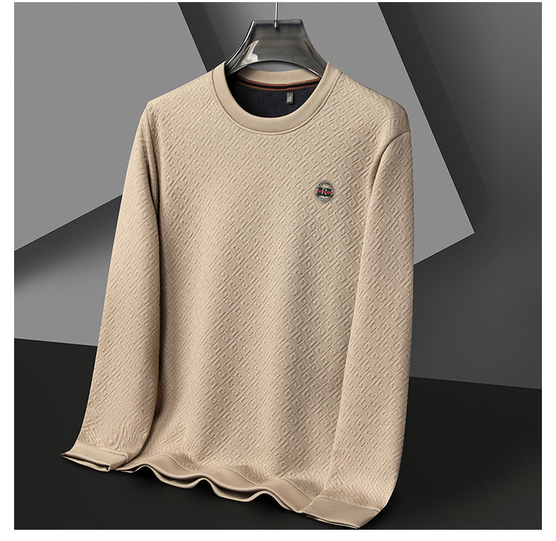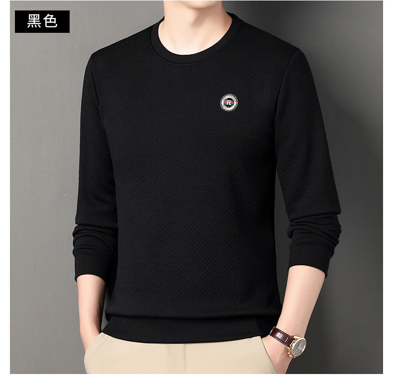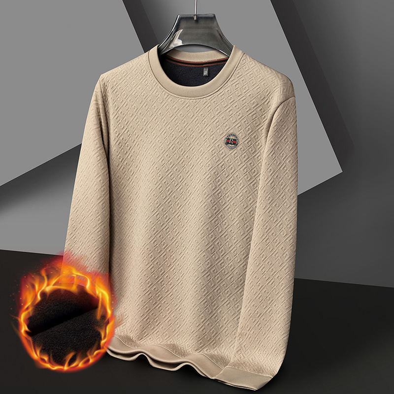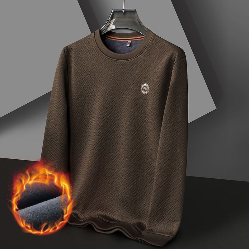 冬季新款加绒加厚保暖打底衫休闲加绒青年时尚简约暗纹卫衣T恤厚