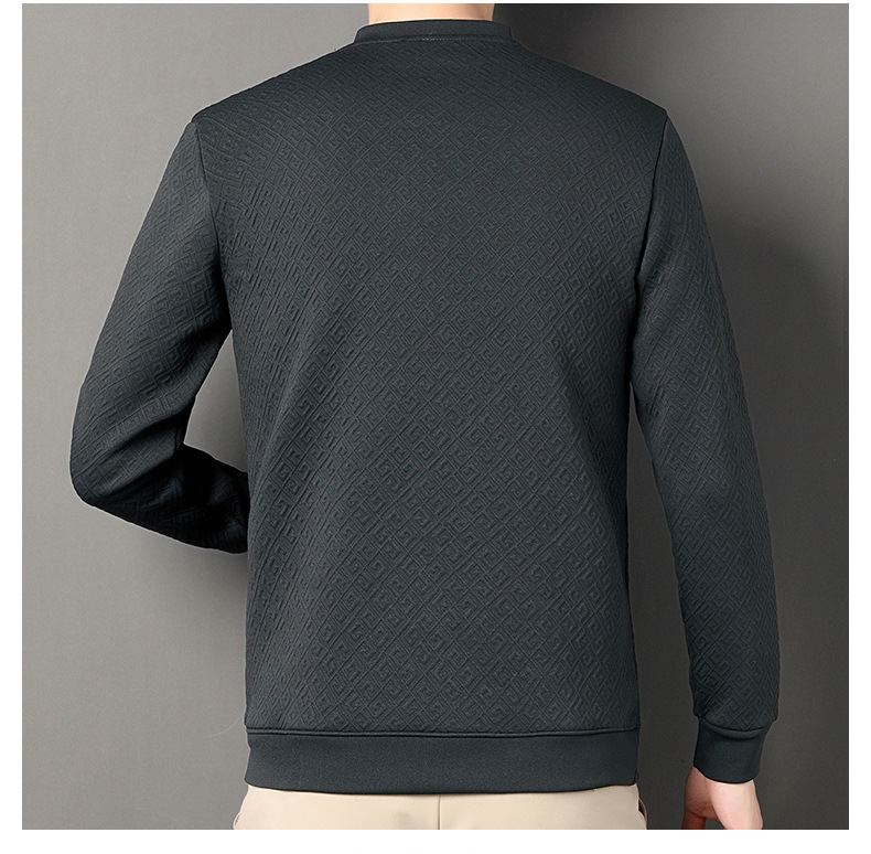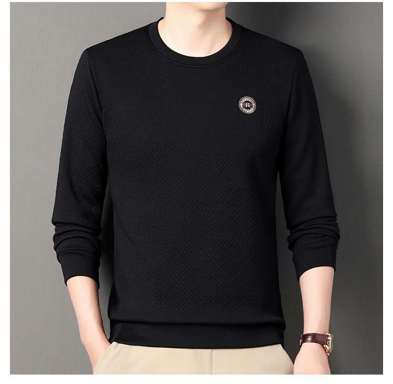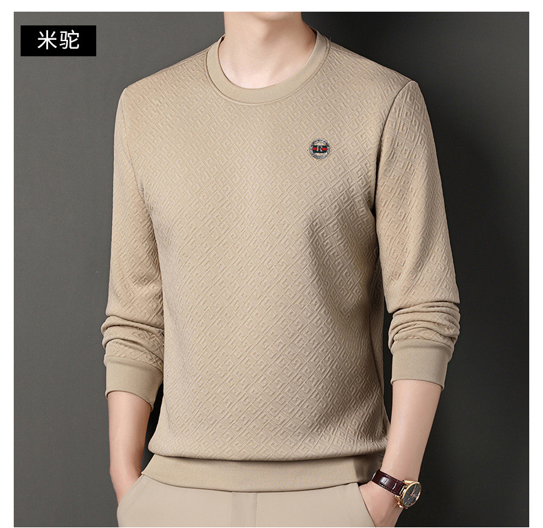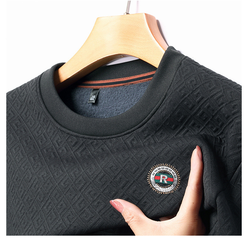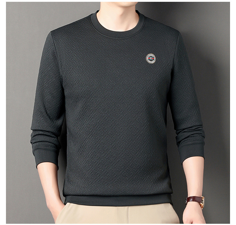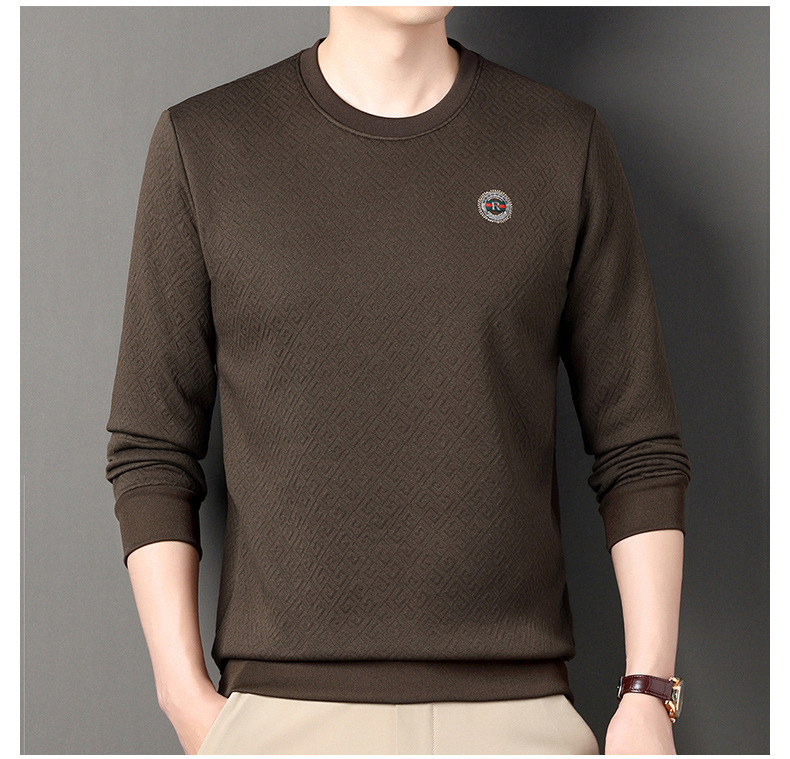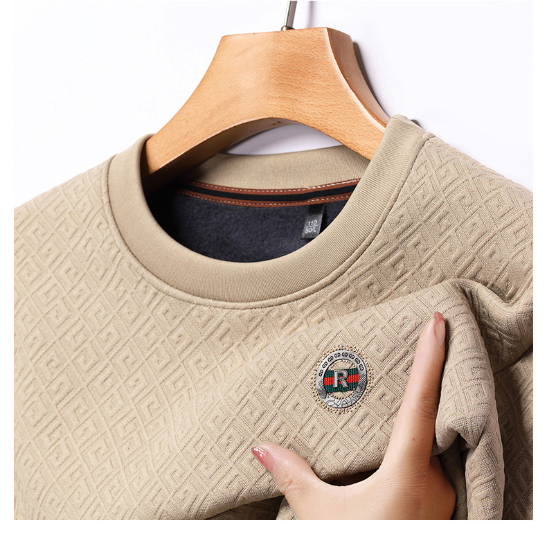 冬季新款加绒加厚保暖打底衫休闲加绒青年时尚简约暗纹卫衣T恤厚