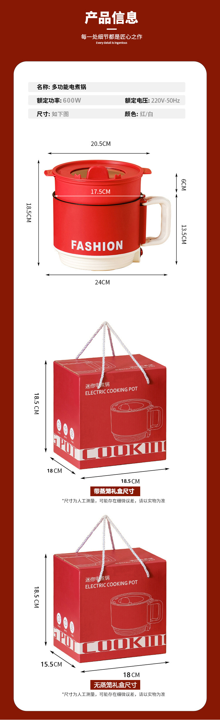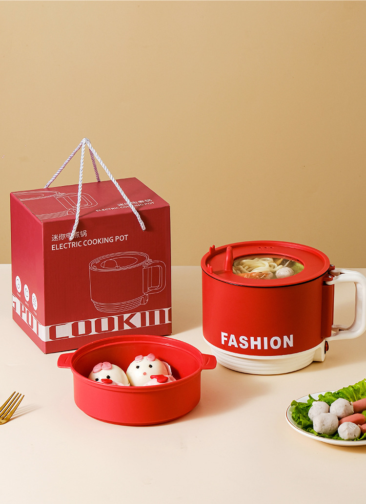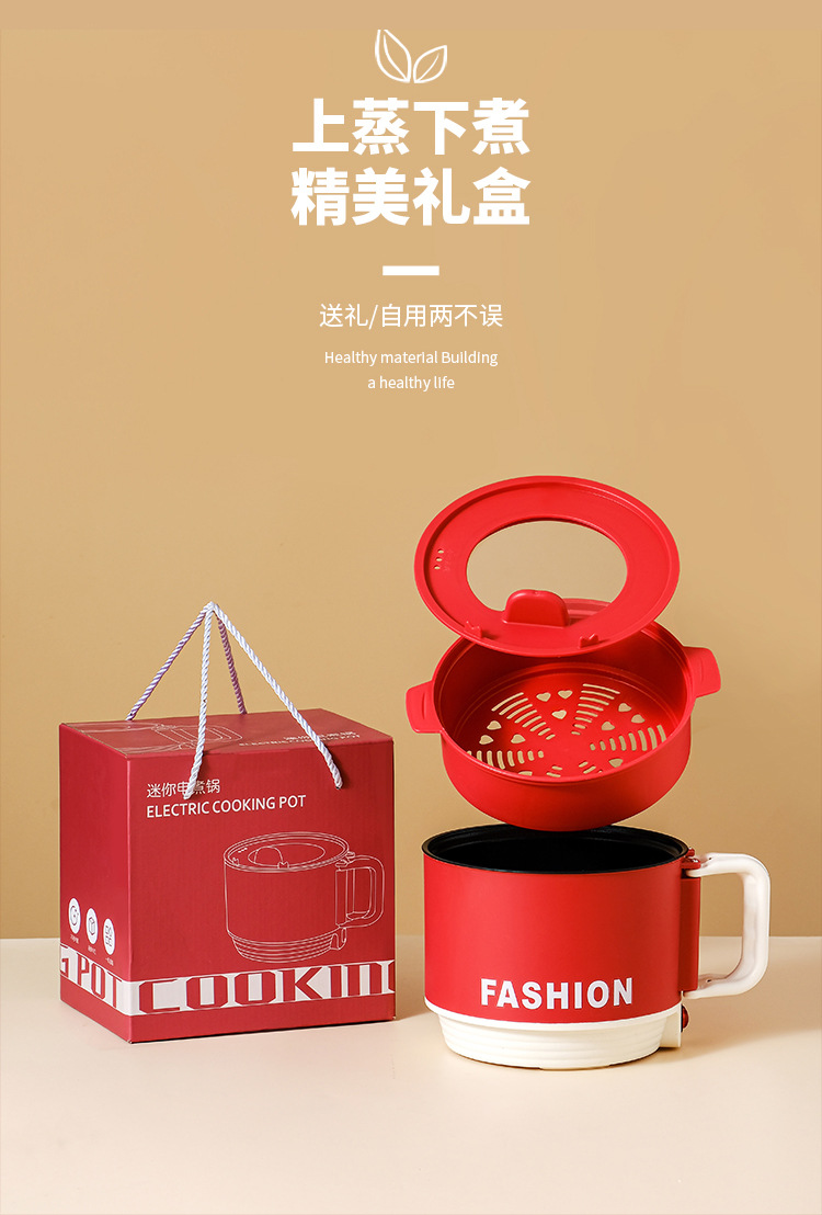 • 접이식 빨간색 전기 밥솥 + 논스틱 + 증기선 (선물 상자)