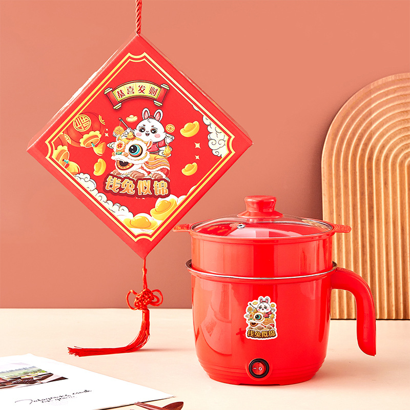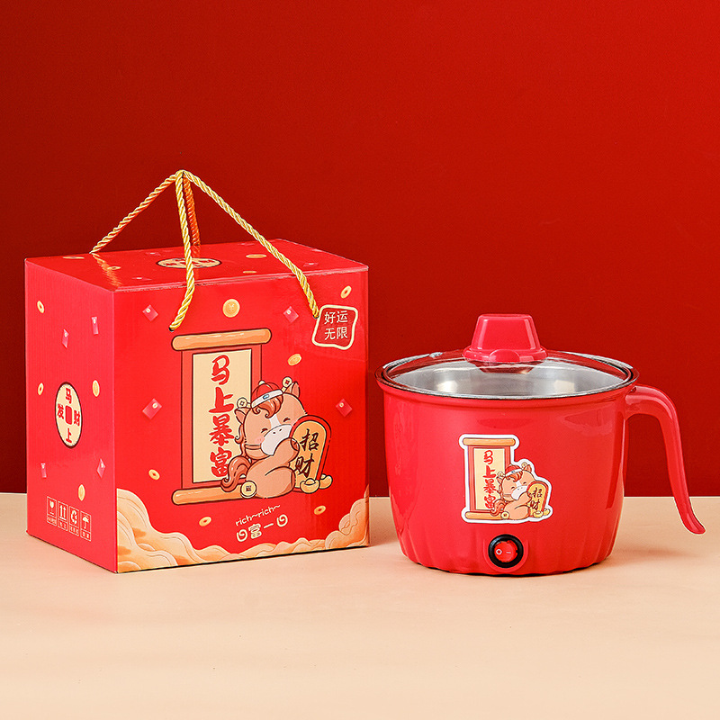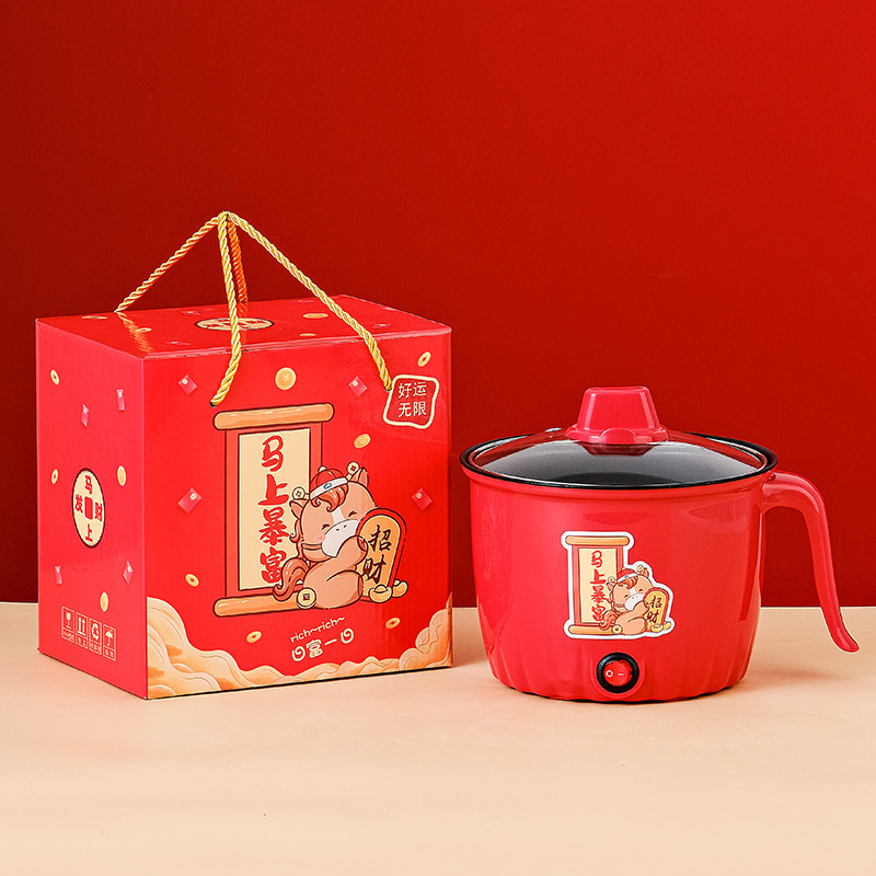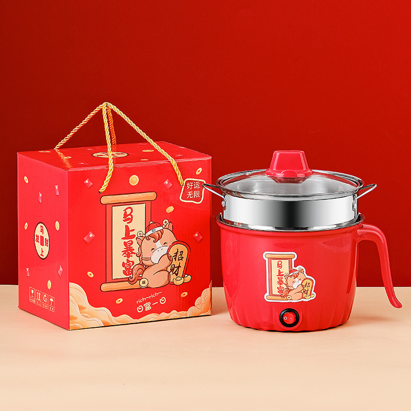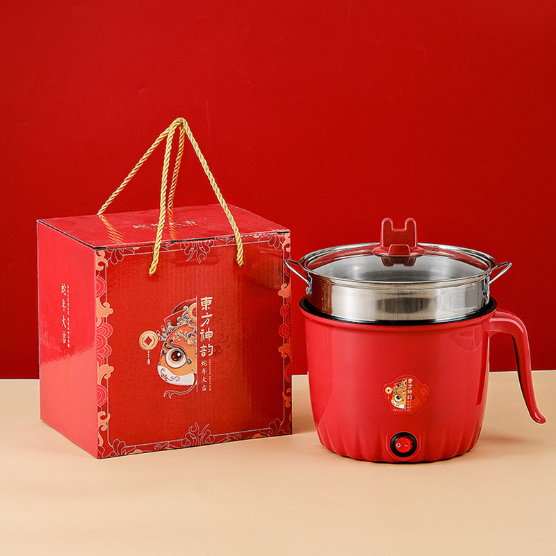 • 돈을 모으는 황금 뱀 전기 요리 냄비 붙지 않는 + 스테인레스 찜통 + 선물 상자