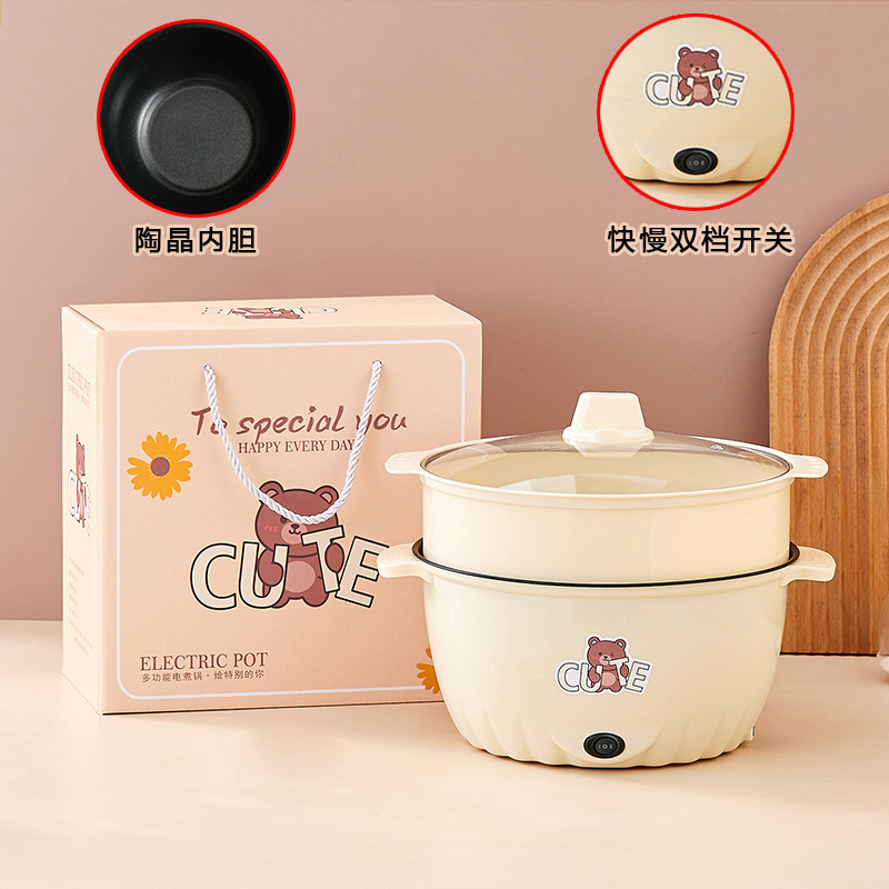 • 18CM 곰 전기 요리 냄비 붙지 않는 + 스테인레스 스틸 찜통(선물 상자 포함)