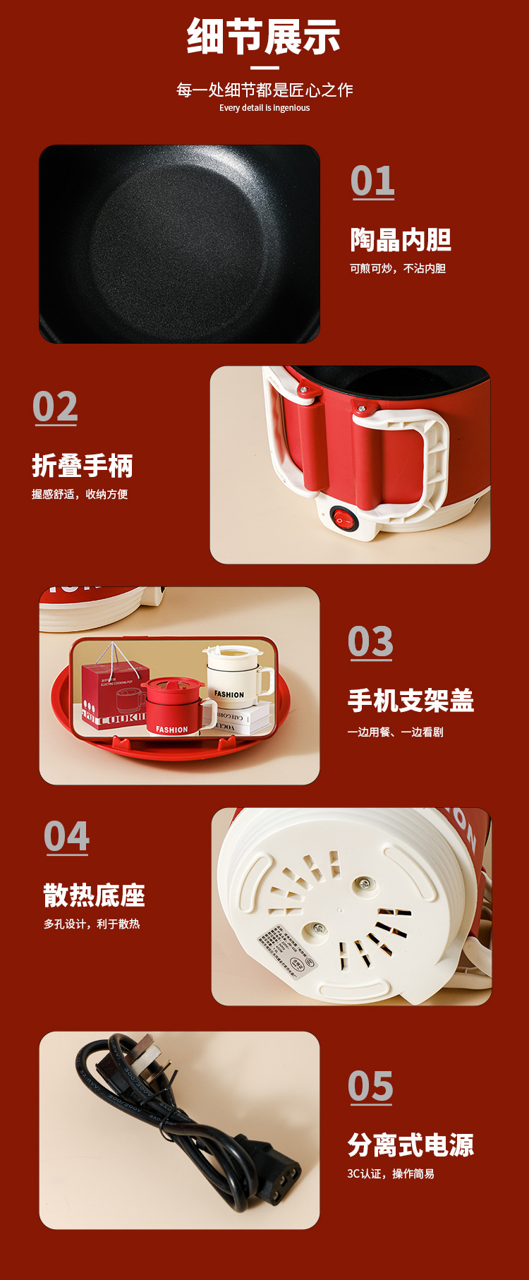 국경 접는 전기 밥솥 다기능 전기 증기선 작은 전기 밥솥 냄비 학생 기숙사 인스턴트 국수 냄비 선물 배치