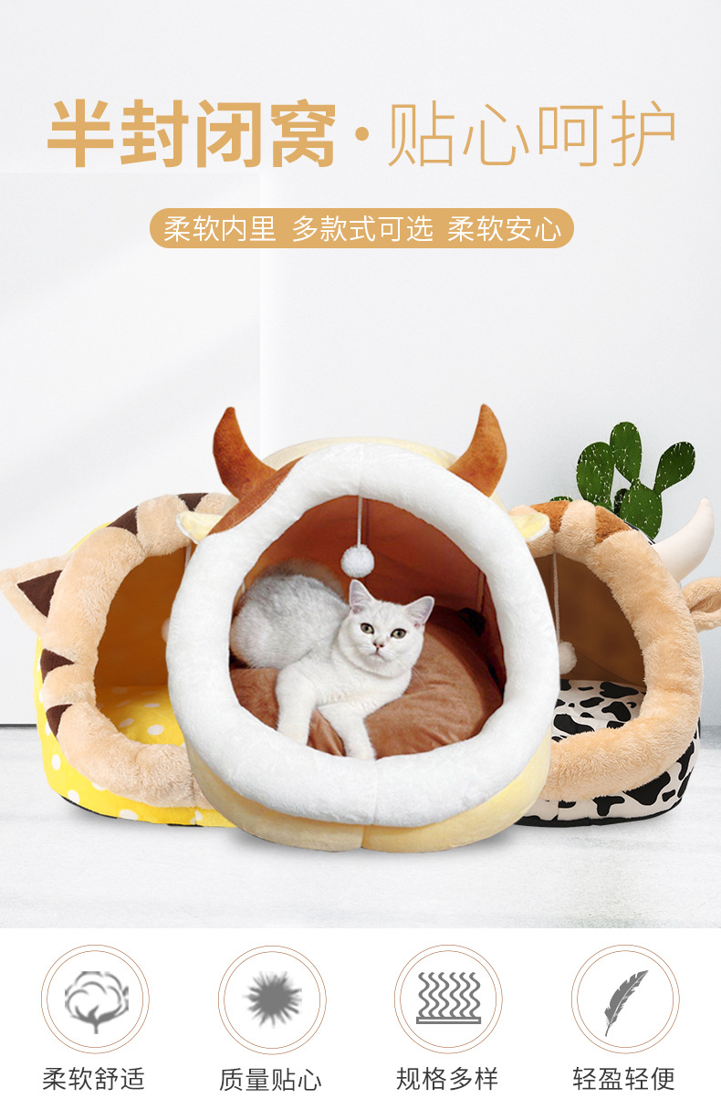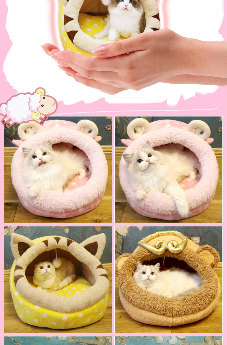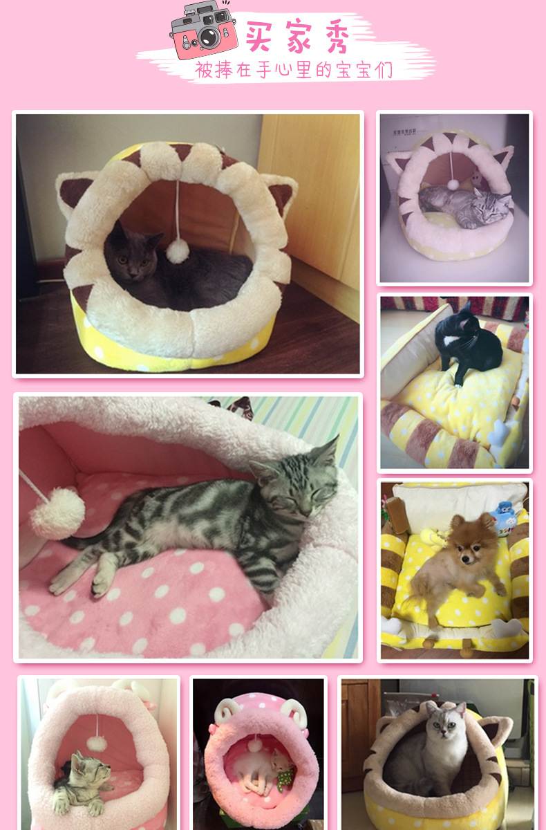 사이버 연예인 반 폐쇄 고양이 둥지 동물 모양의 애완 동물 둥지 이동식 및 빨 개 둥지 여름 매트가있는 애완 동물 용품스토어 가기