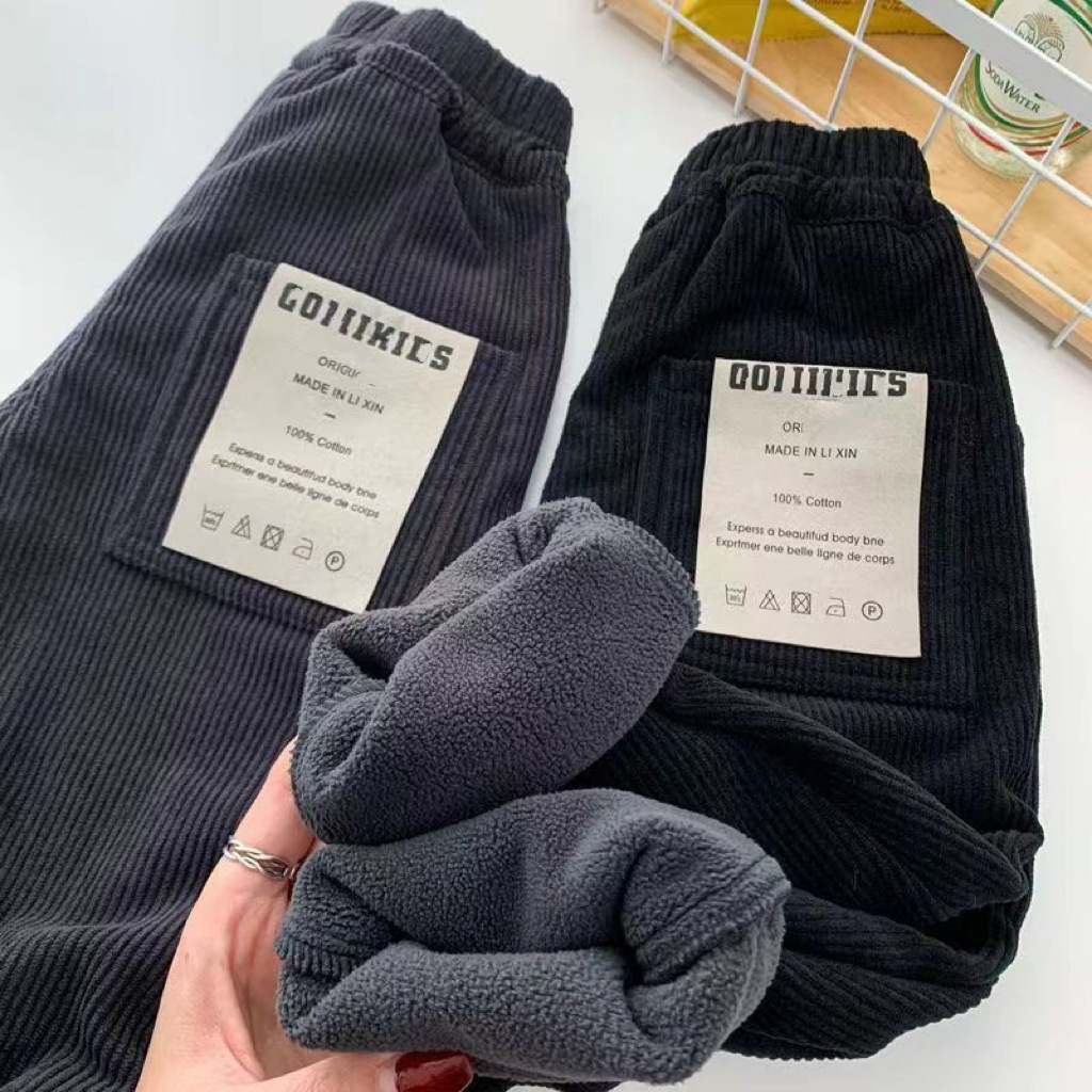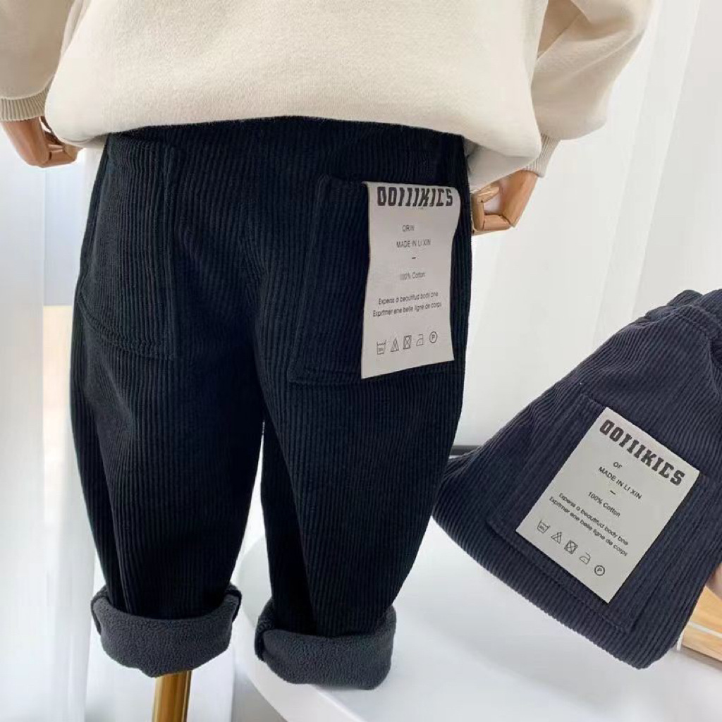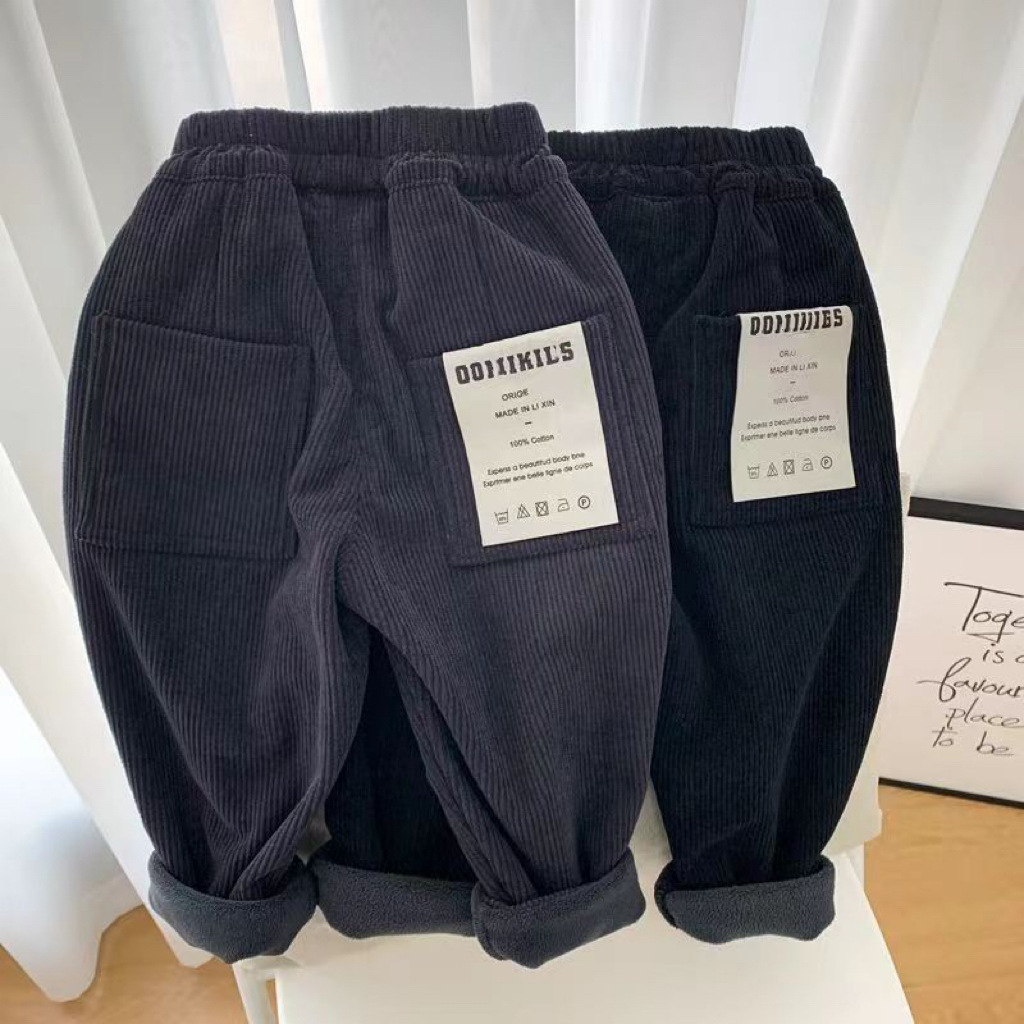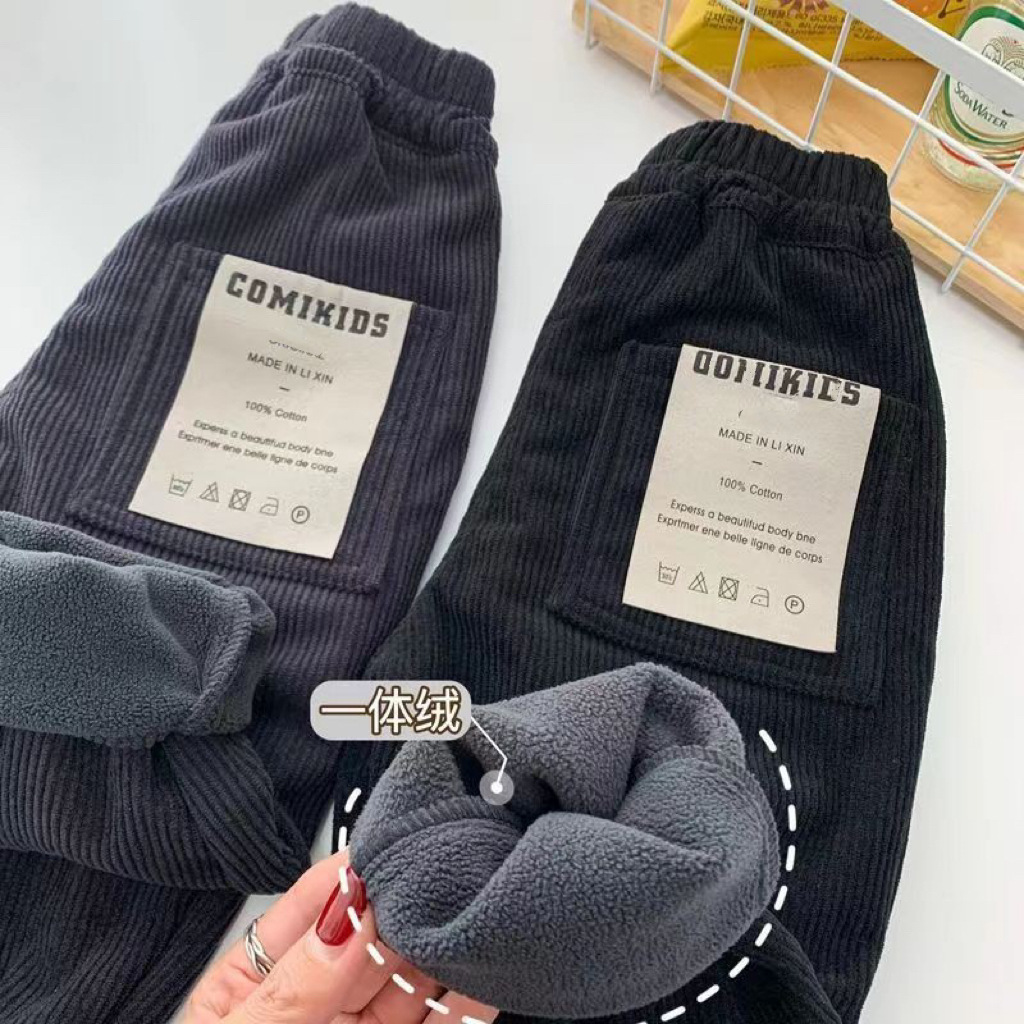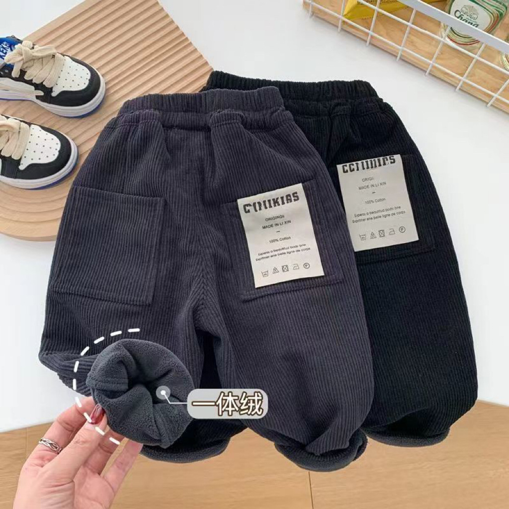 남아용 기모 두꺼운 코듀로이 2025 가을 겨울 신상 유아 아동 한국 스타일 일체형 기모 바지 트렌디스토어 가기