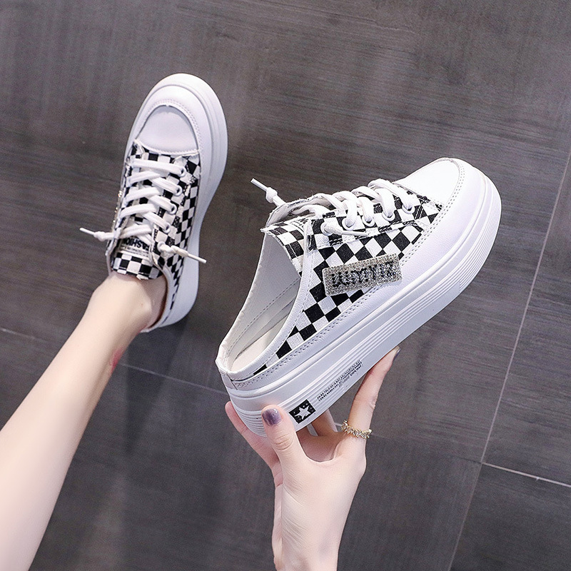 하프 슬리퍼 여성용 2023 봄 새로운 모든 경기 얇은 통기성 메쉬 신발 샌들 아우터웨어 Baotou 작은 흰색 신발