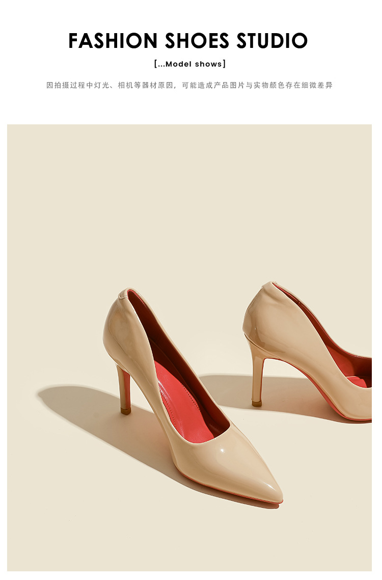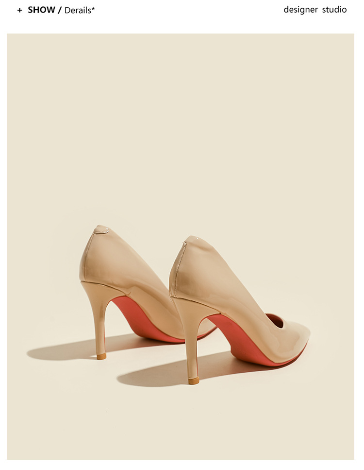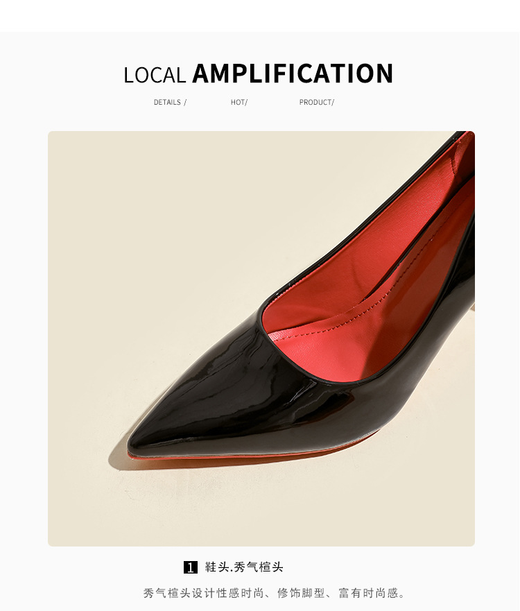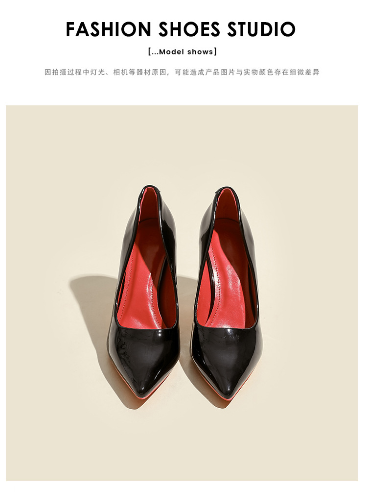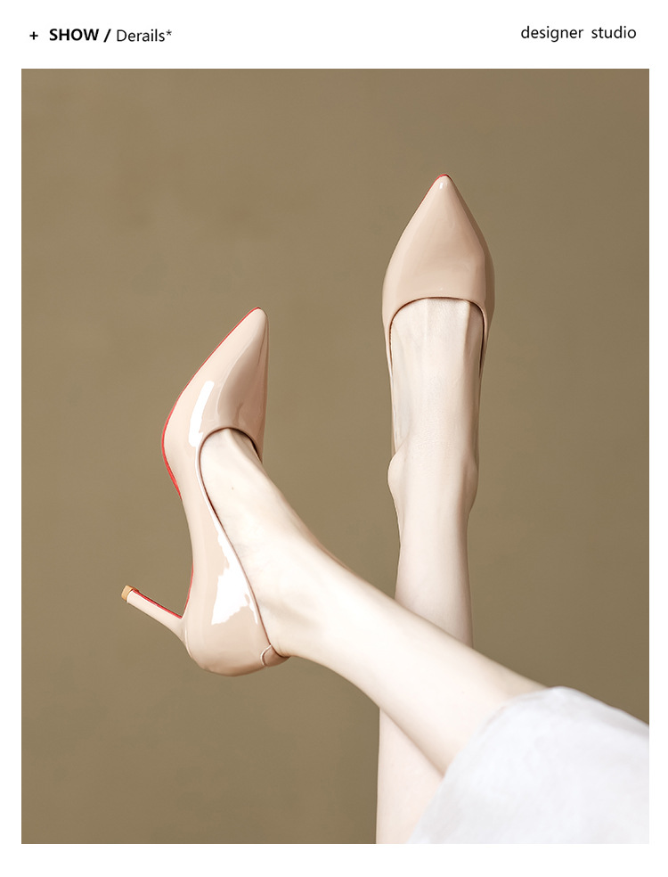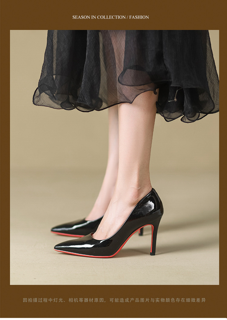 2025년 신상 여성용 레드 하이힐, 뾰족코, 에나멜 가죽 디자인, 유니크하고 인기 있는 블랙 스틸레토 힐, 가을용스토어 가기