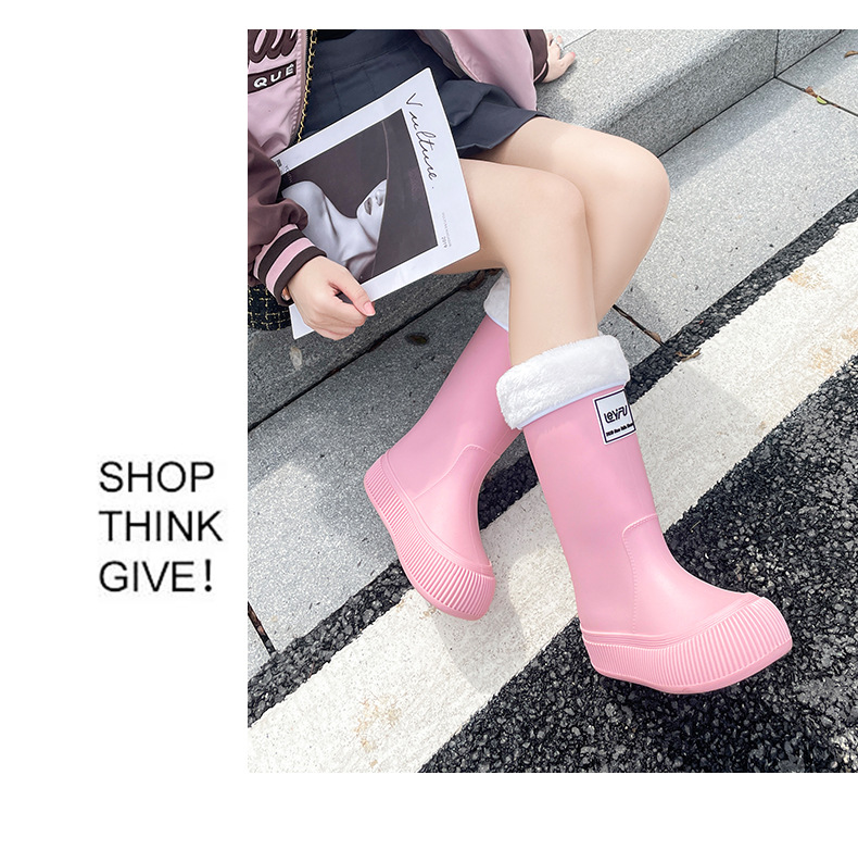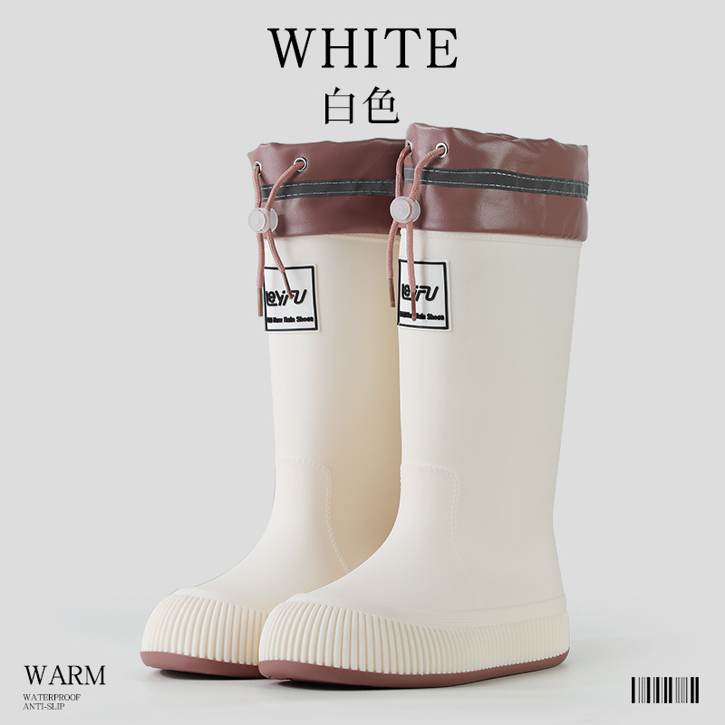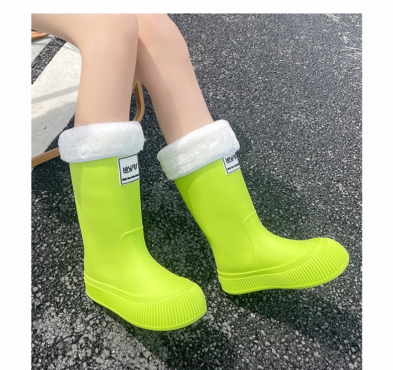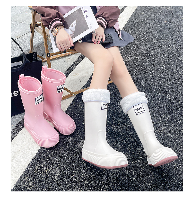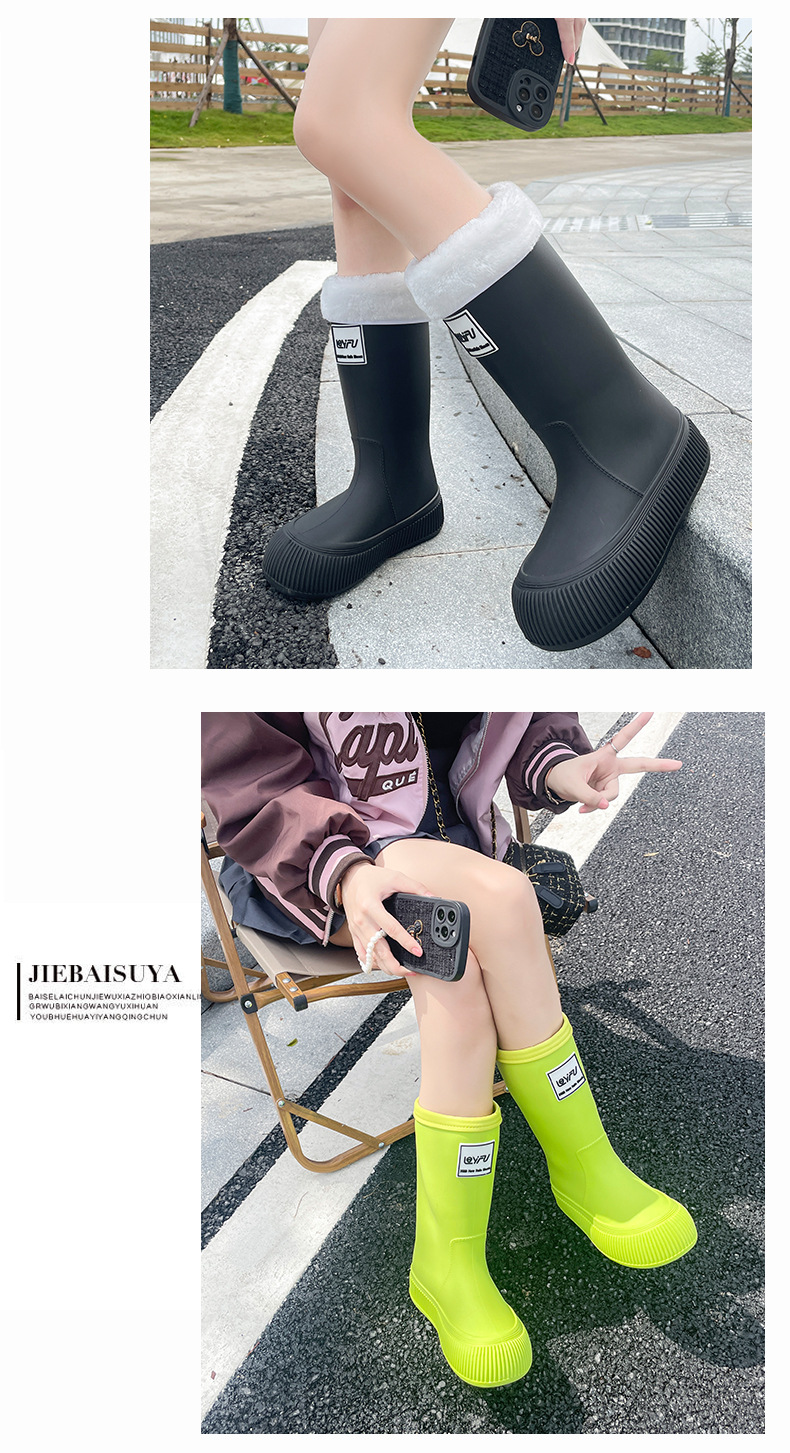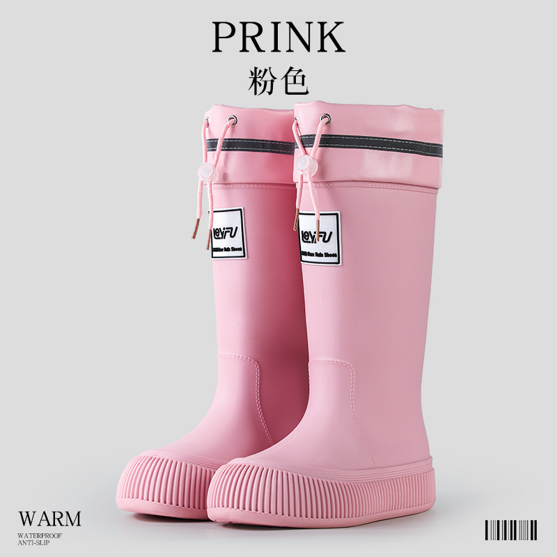 2023 새로운 성인 한국 패션 높은 배럴 레인 슈즈 여성의 가을과 겨울 따뜻한 기모 야외 착용 방수 탄성 거들스토어 가기