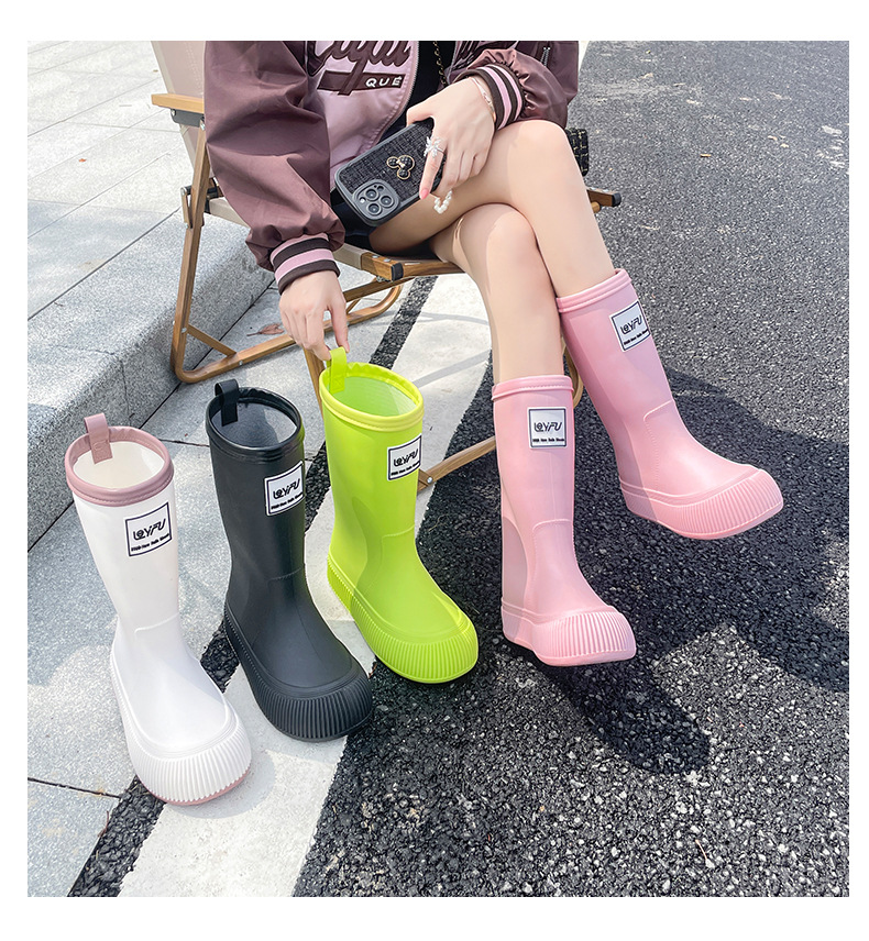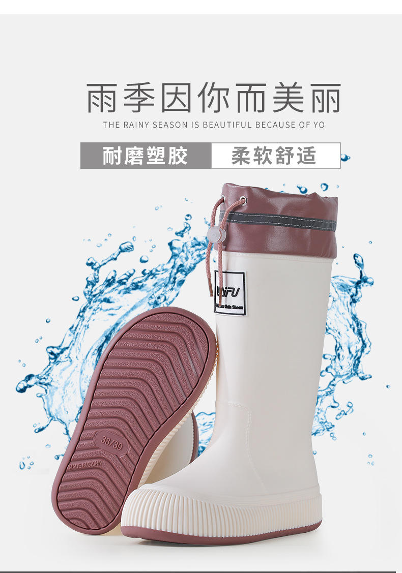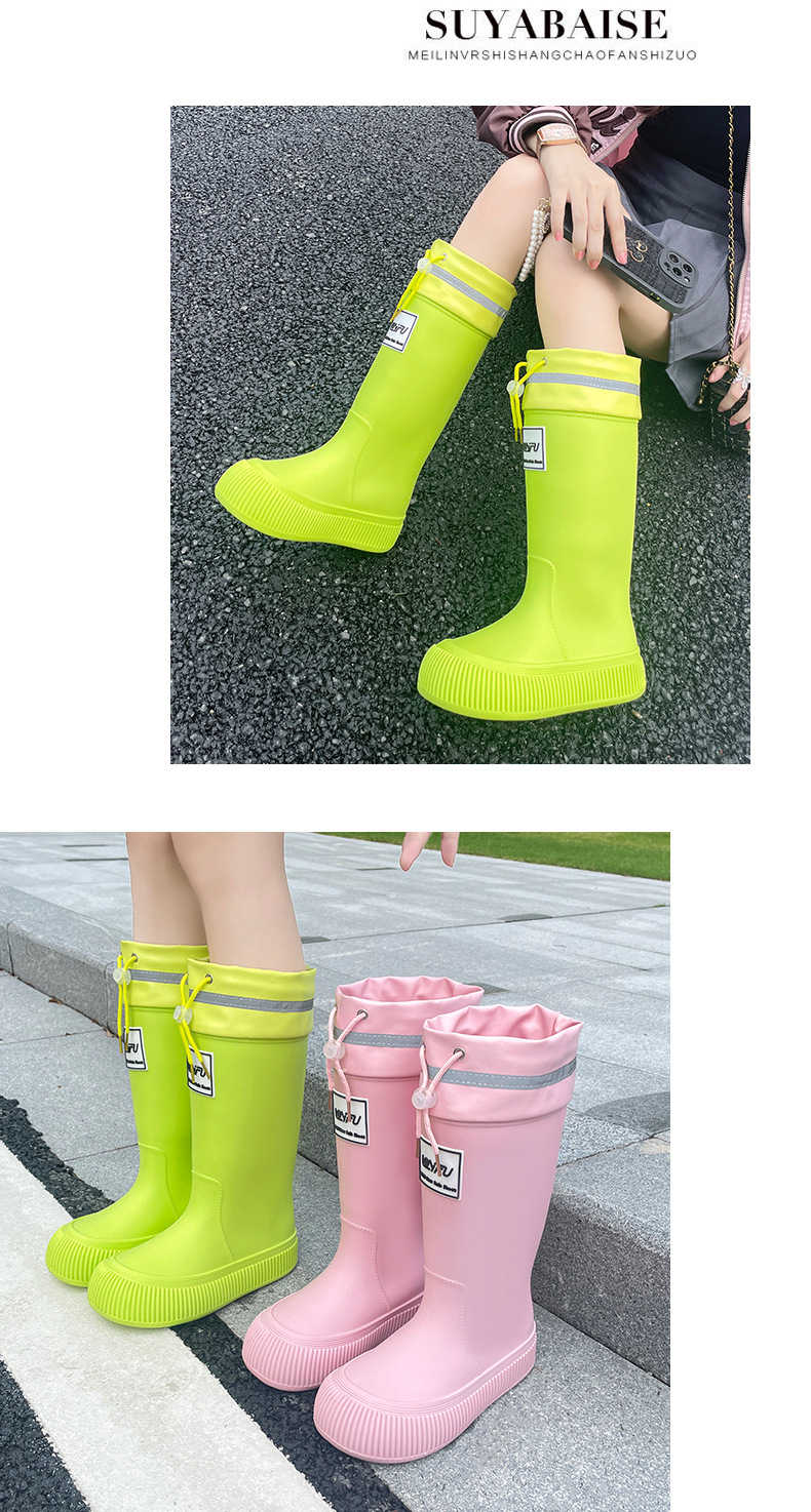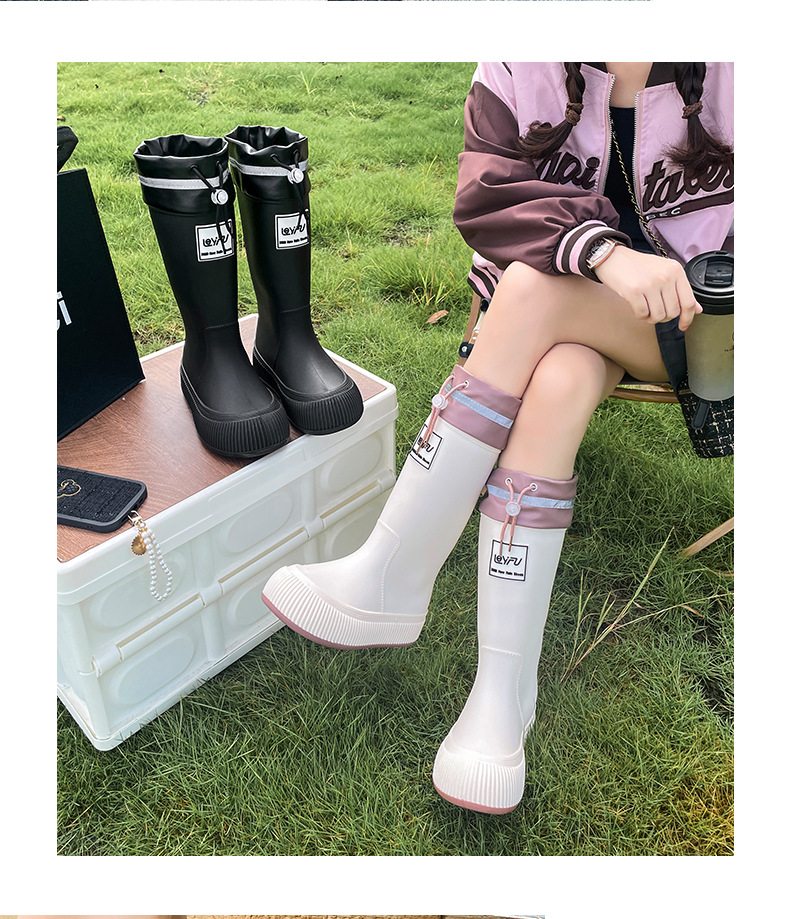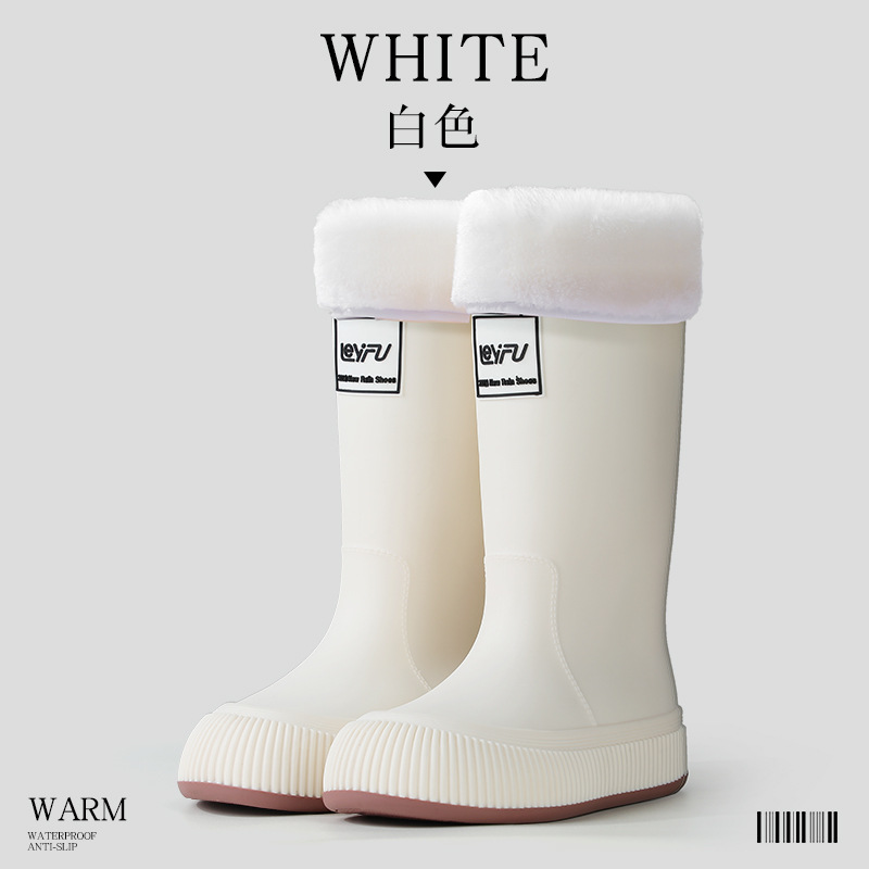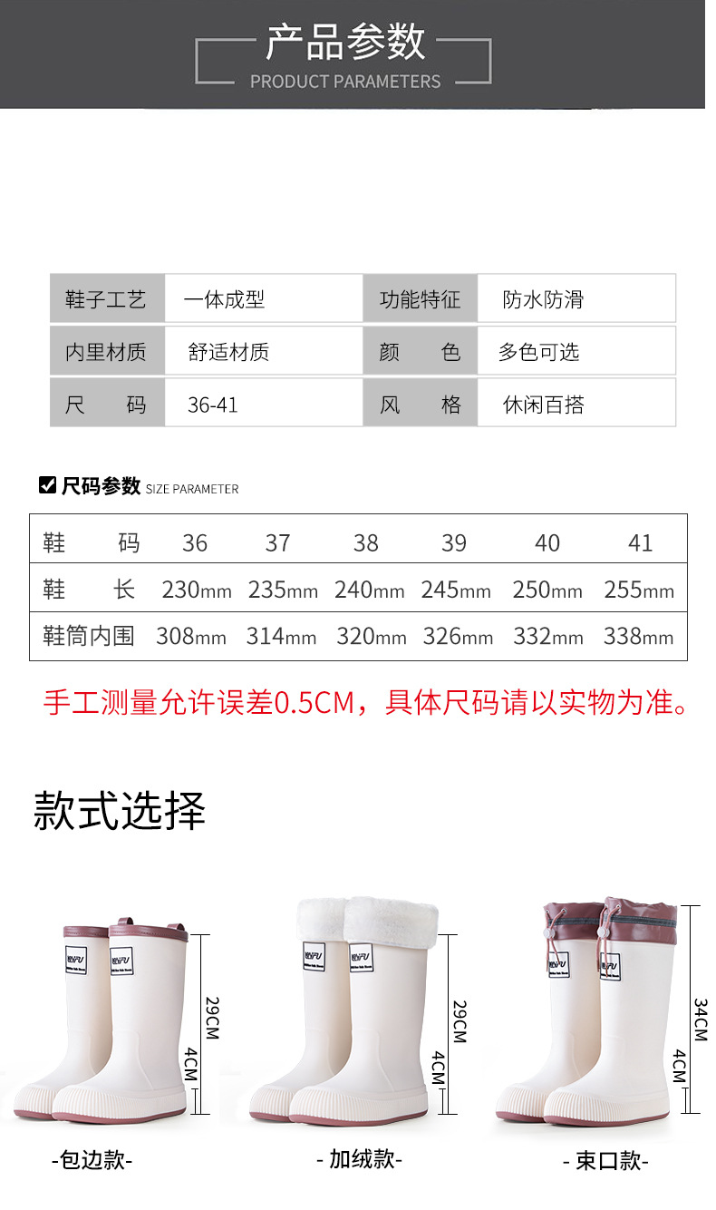 2023 새로운 성인 한국 패션 높은 배럴 레인 슈즈 여성의 가을과 겨울 따뜻한 기모 야외 착용 방수 탄성 거들스토어 가기