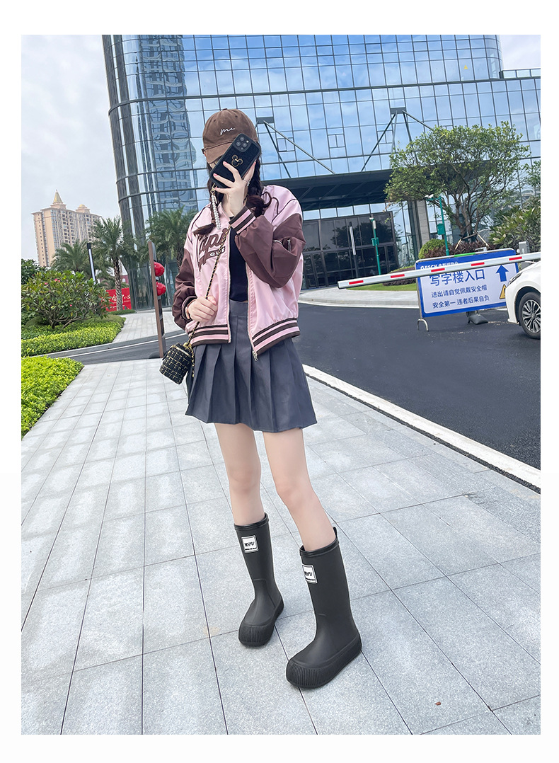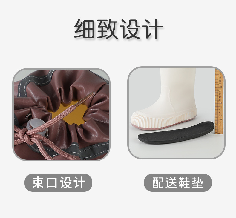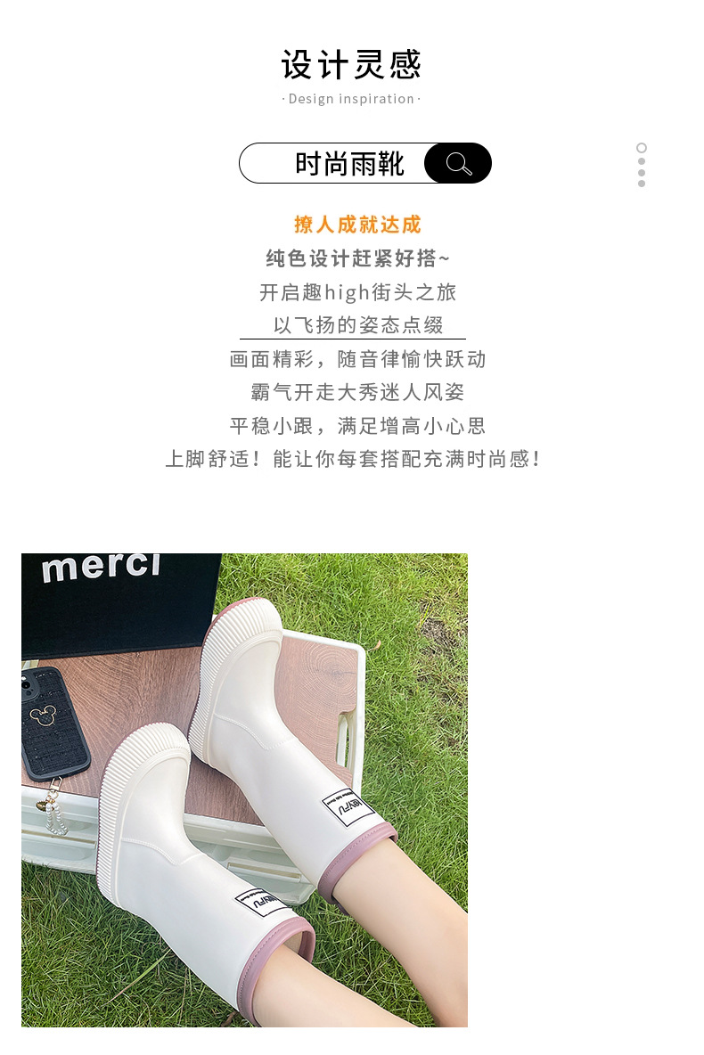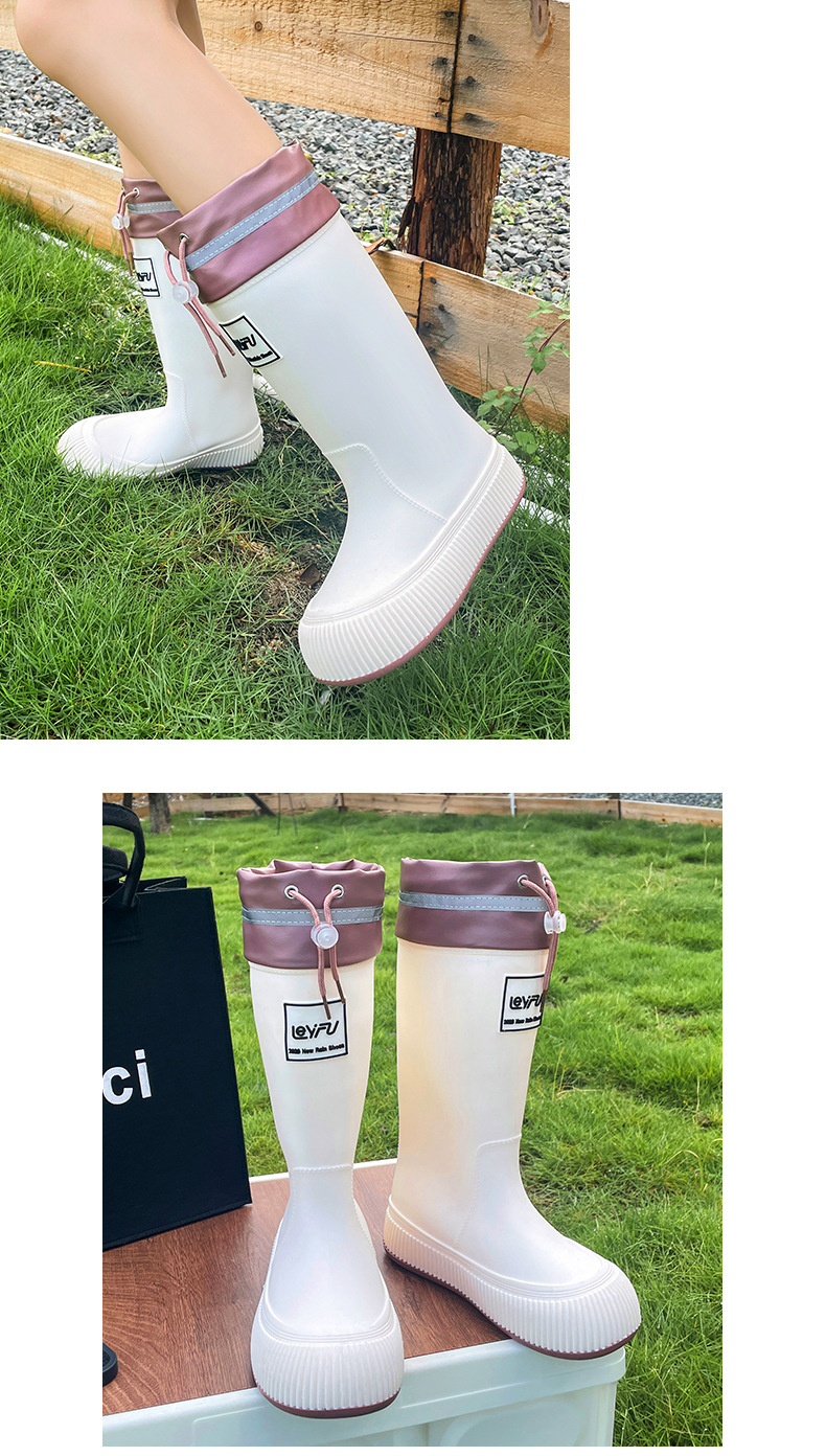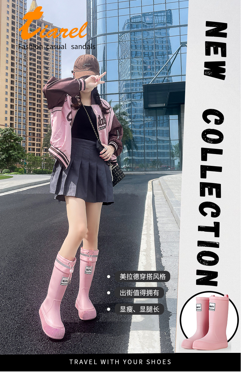 2023 새로운 성인 한국 패션 높은 배럴 레인 슈즈 여성의 가을과 겨울 따뜻한 기모 야외 착용 방수 탄성 거들스토어 가기