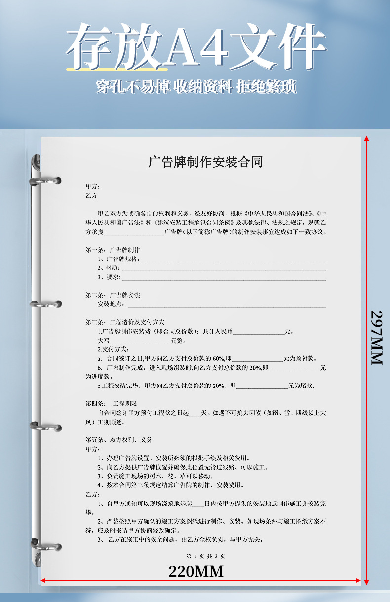 • [A4-세로 버전-4홀] 2팩(보너스: 홀 펀치)