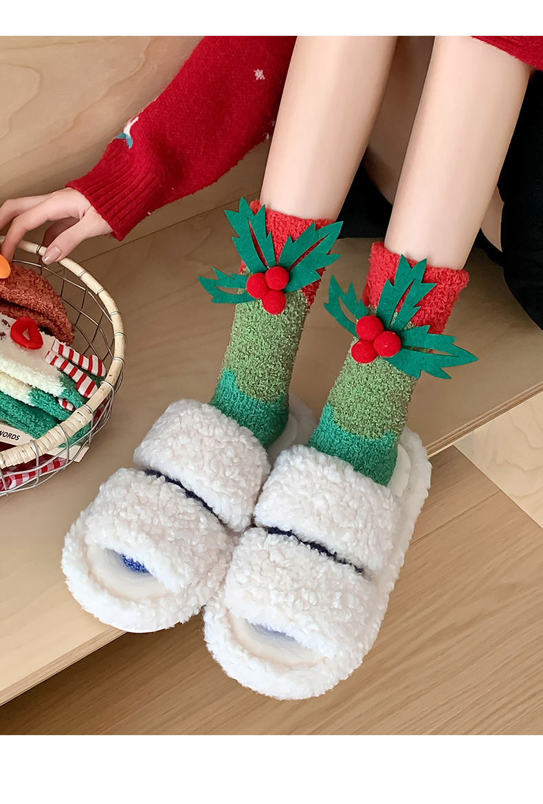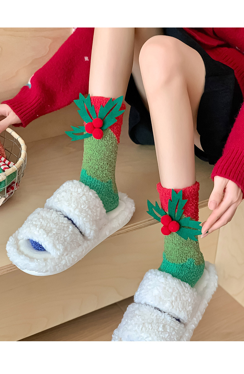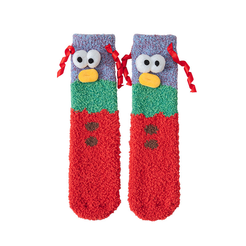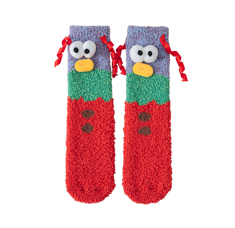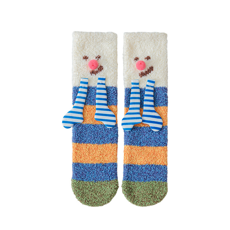 연인을위한 크리스마스 봉제 만화 튜브 양말 귀여운 두꺼운 활 눈사람 어린이를위한 작은 발 따뜻한 양말