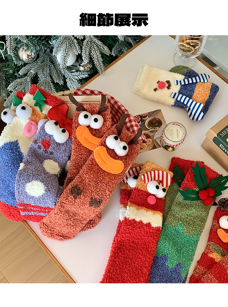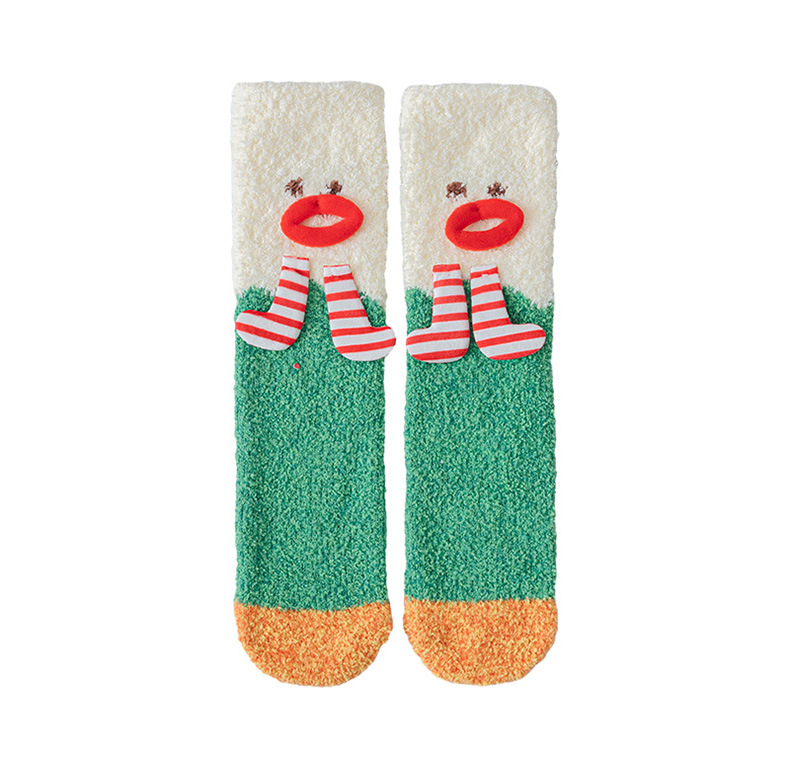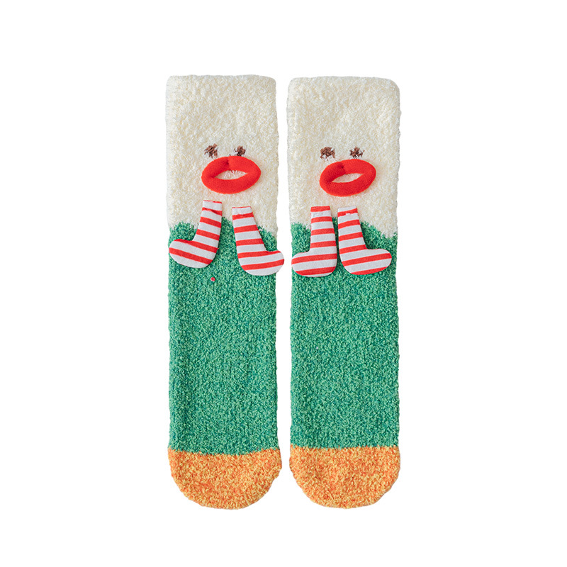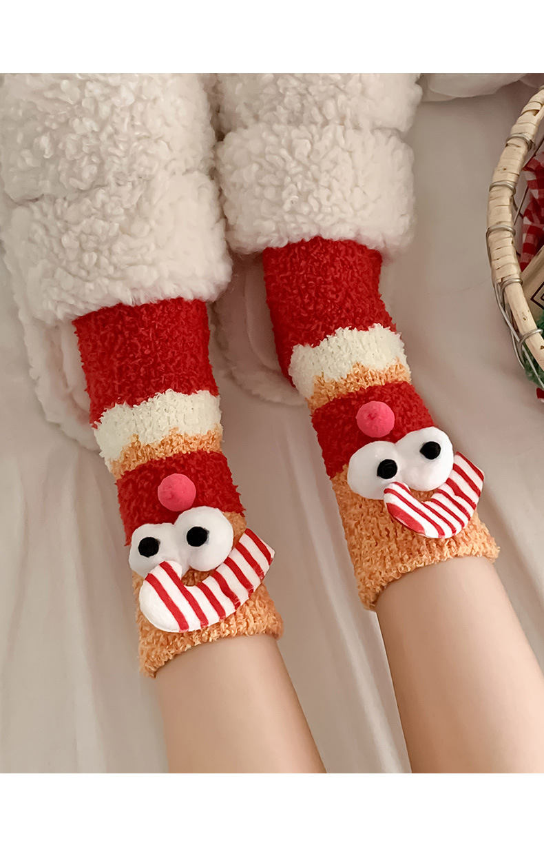 연인을위한 크리스마스 봉제 만화 튜브 양말 귀여운 두꺼운 활 눈사람 어린이를위한 작은 발 따뜻한 양말스토어 가기
