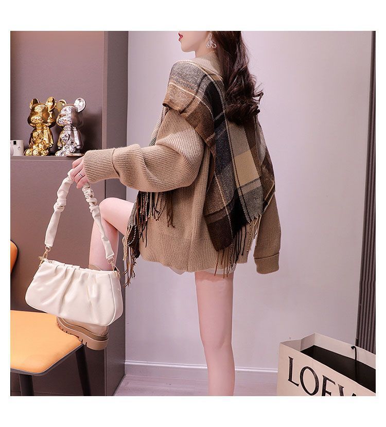 느슨한 가짜 투피스 스탠드 칼라 스웨터 카디건 여성용 2023 디자인 센스 세련된 나이 감소 새로운 가을 니트 재킷스토어 가기